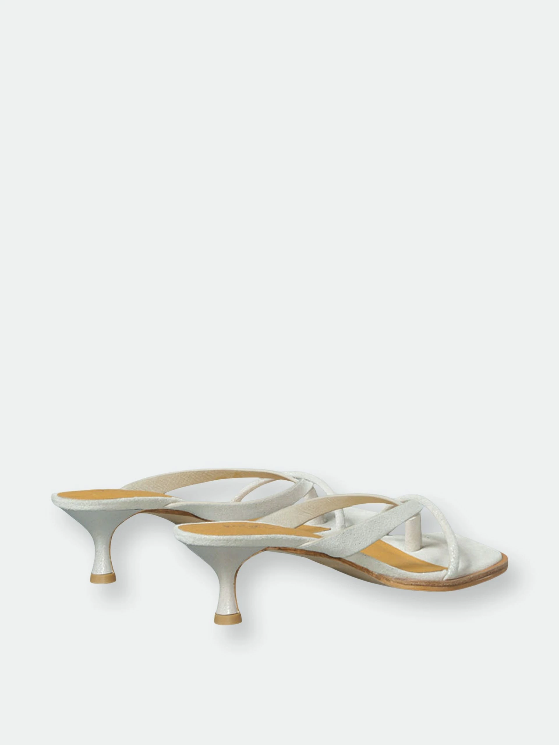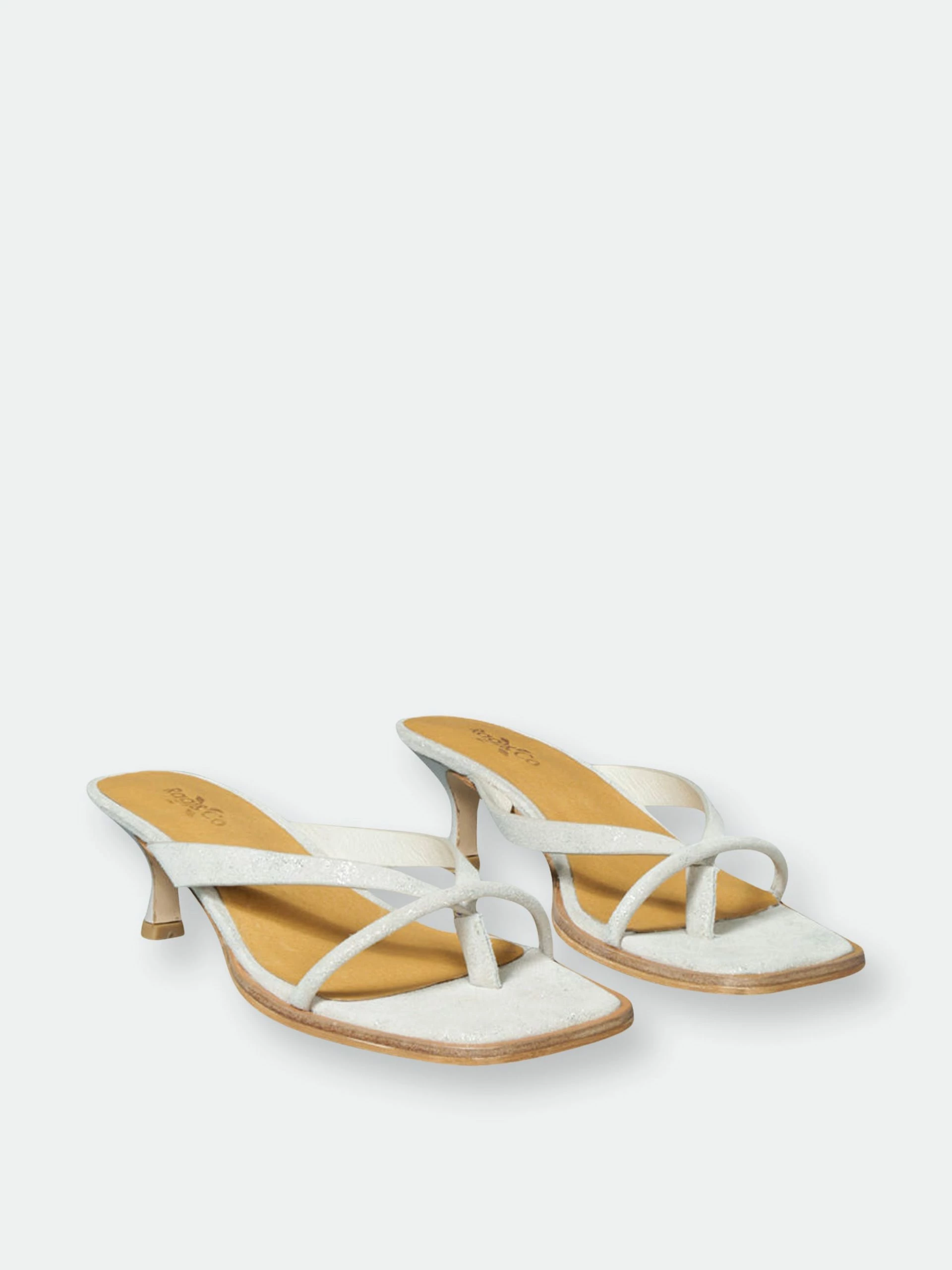 Kitten Heels Square Toe-Thong Sandal made up of luxurious leather. The handcrafted shoe rests on a durable and flexible man-made sole.
