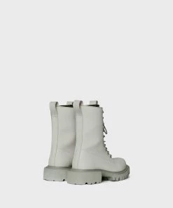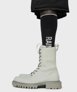 Show combat boot is a limited-edition boot designed for the aw22 runway show. The water-repellent design reinterprets the wardrobe staple with prominent outsole and a sculpted silhouette in premium all-vegan materials. The ankle-high lace-ups sit on cleated eva soles, delivering superior comfort, flexibility and grip in all weathers. Uppers, in rains’ signature pu fabric, receive piping details, reinforced toe and heel caps and weather-resistant metal eyelets. The design is finished with signature tpu straps on padded tongue and rear shaft. Show capsule combat boot delivers a close fit around heel and instep with a roomier toe box and vamp.