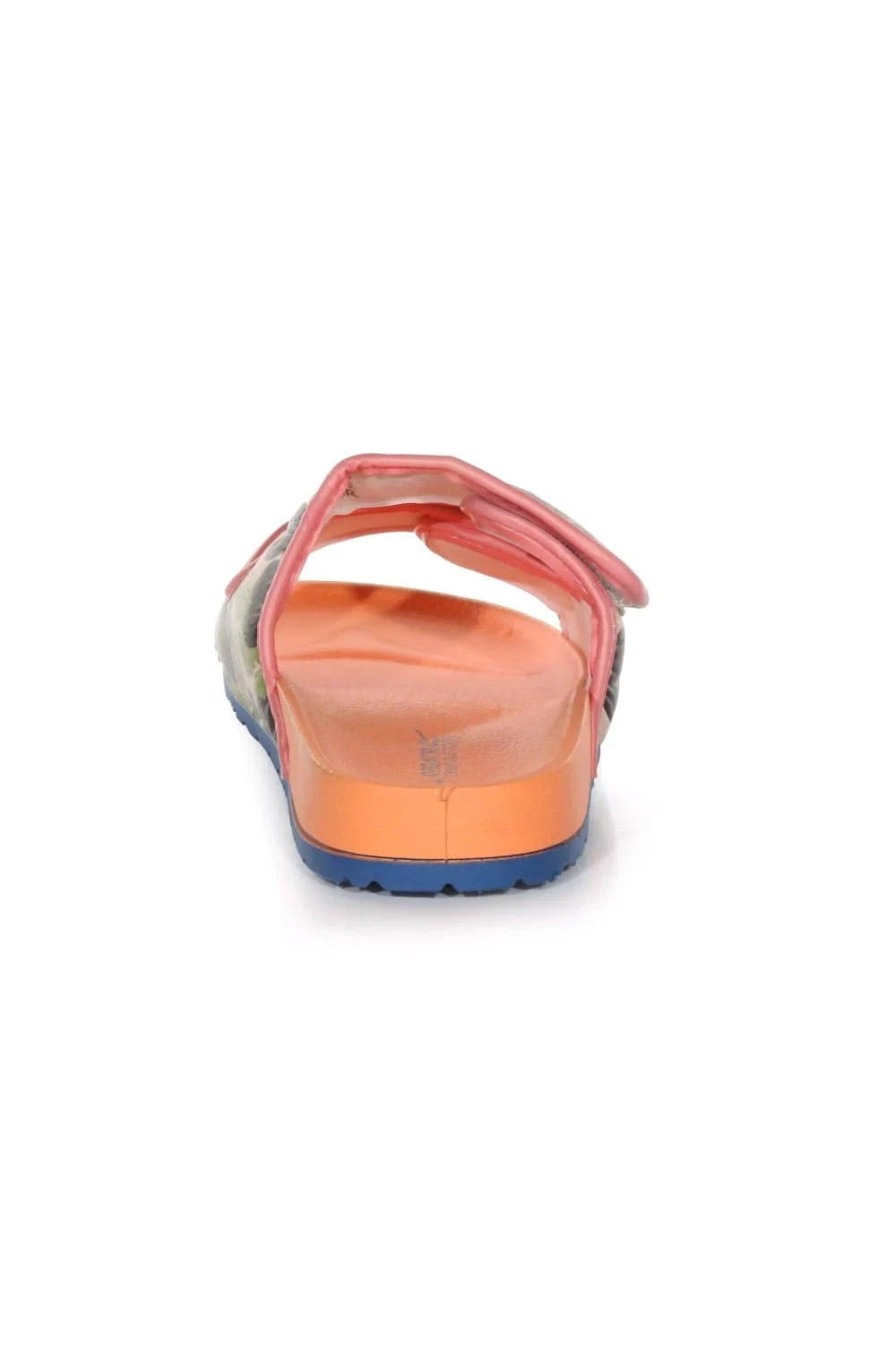 Bold and beautiful- This Women’s Orla Twin Sandals will complete your summer look, and have you standing out from the crowd. These bold, printed graphic sandals with playful contrasting colour soles, have adjustable straps for a comfortable, secure fit. with a moulded pu footbed and hardwearing outsole, these sandals will be the perfect go to, for everyday walking and beach days.