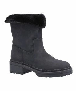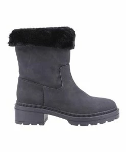 – Upper: Faux Leather.- Lining: Faux Fur.- Insole: Foam.- Outsole: Lug Sole.- Sole Features: Durable, Flexible.- Fastening: Pull-On.- Roll Down.- Low Heel.- Cut: Calf-Length.- Trim: Faux Fur.- Design: Plain.- Toe Style: Round..- Gender: Women