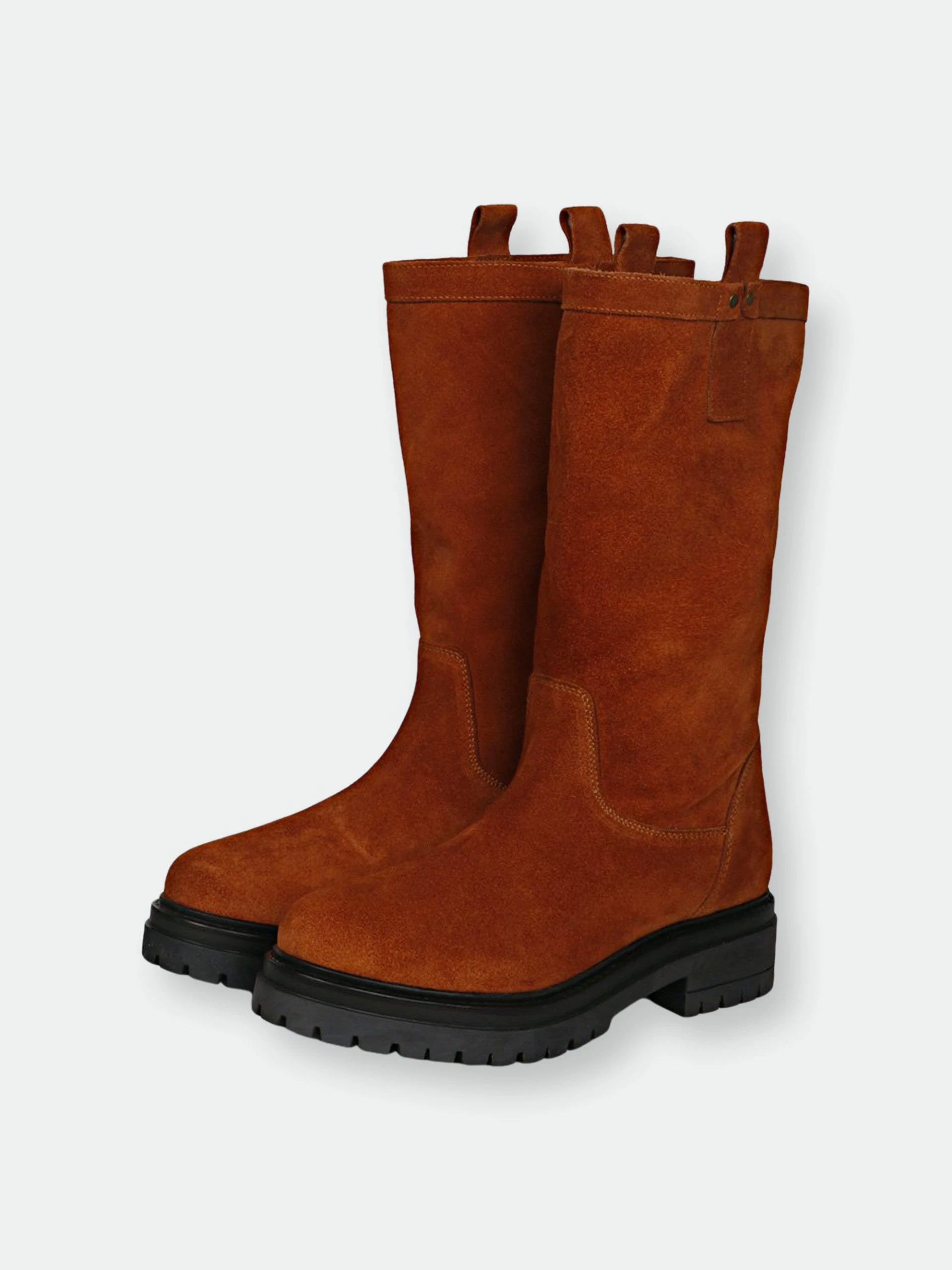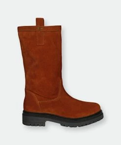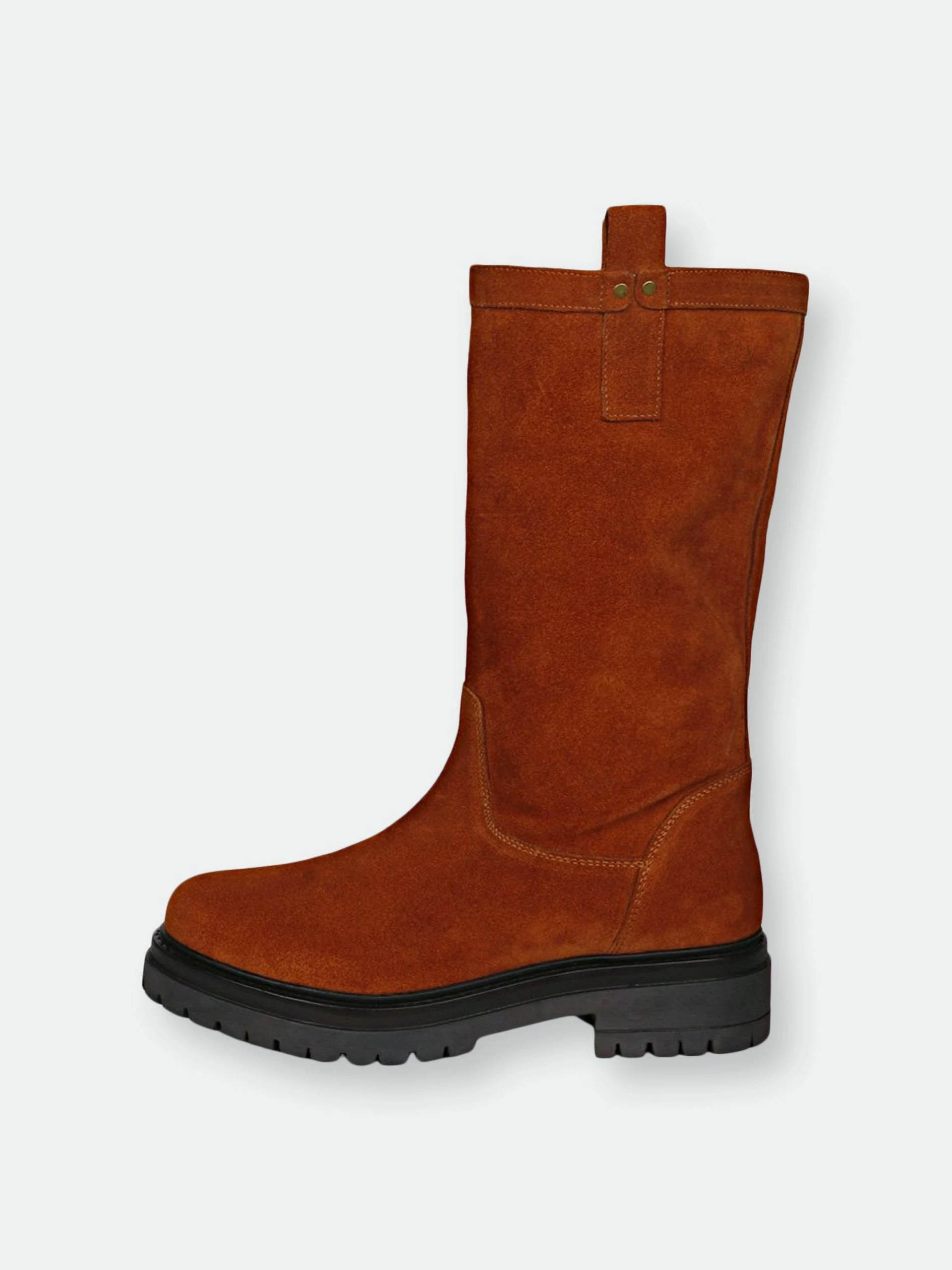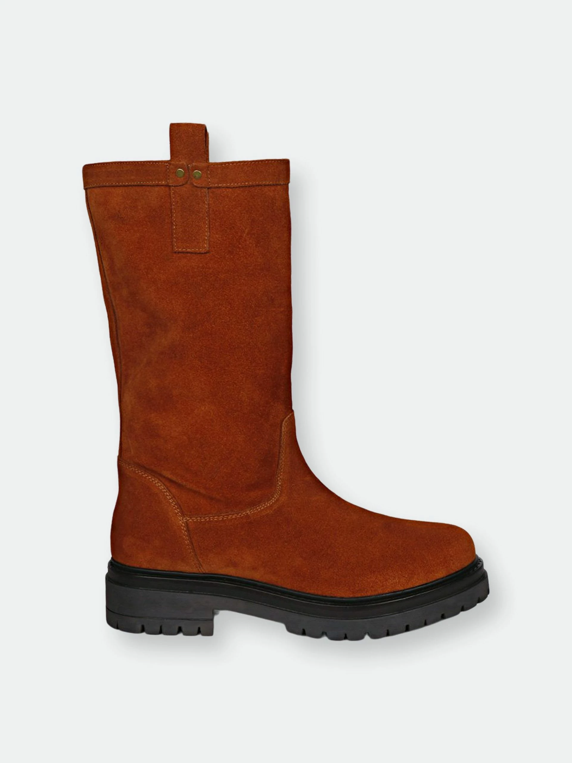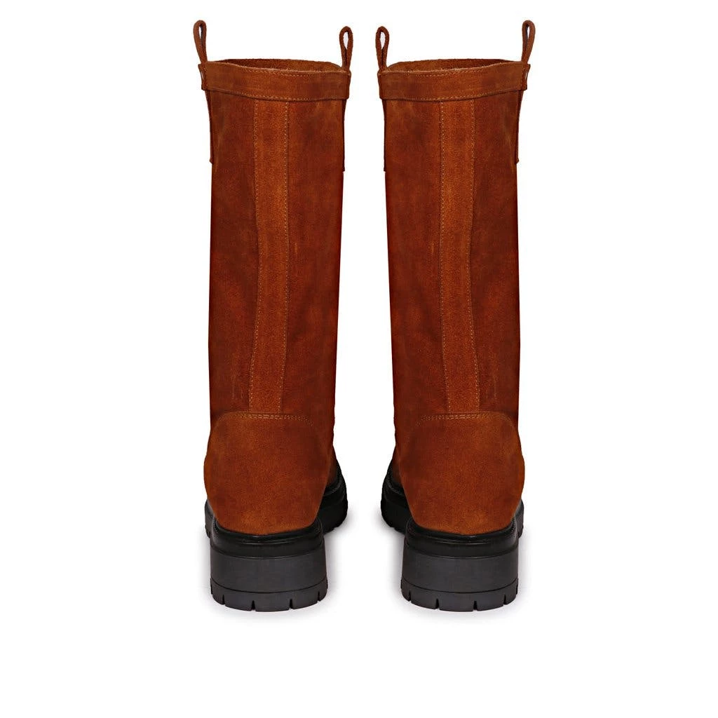 A pair of saint alexandra dark cuoio suede leather boot features stitching details with paneled finish, a rounded toe and leather loop both side on top. these top-notch suede leather boots by saint g will keep you looking stylish all year long. Complete with pu lining, padded footbed and a slip-resistant honey tpr sole provides superior grip on various surfaces. A low heel makes this boot a stylish choice for any occasion. The height of the boot is 33 cm. easy to pair with your favorite dress for a chic look. Bring a touch of elegance everywhere you go.
