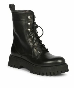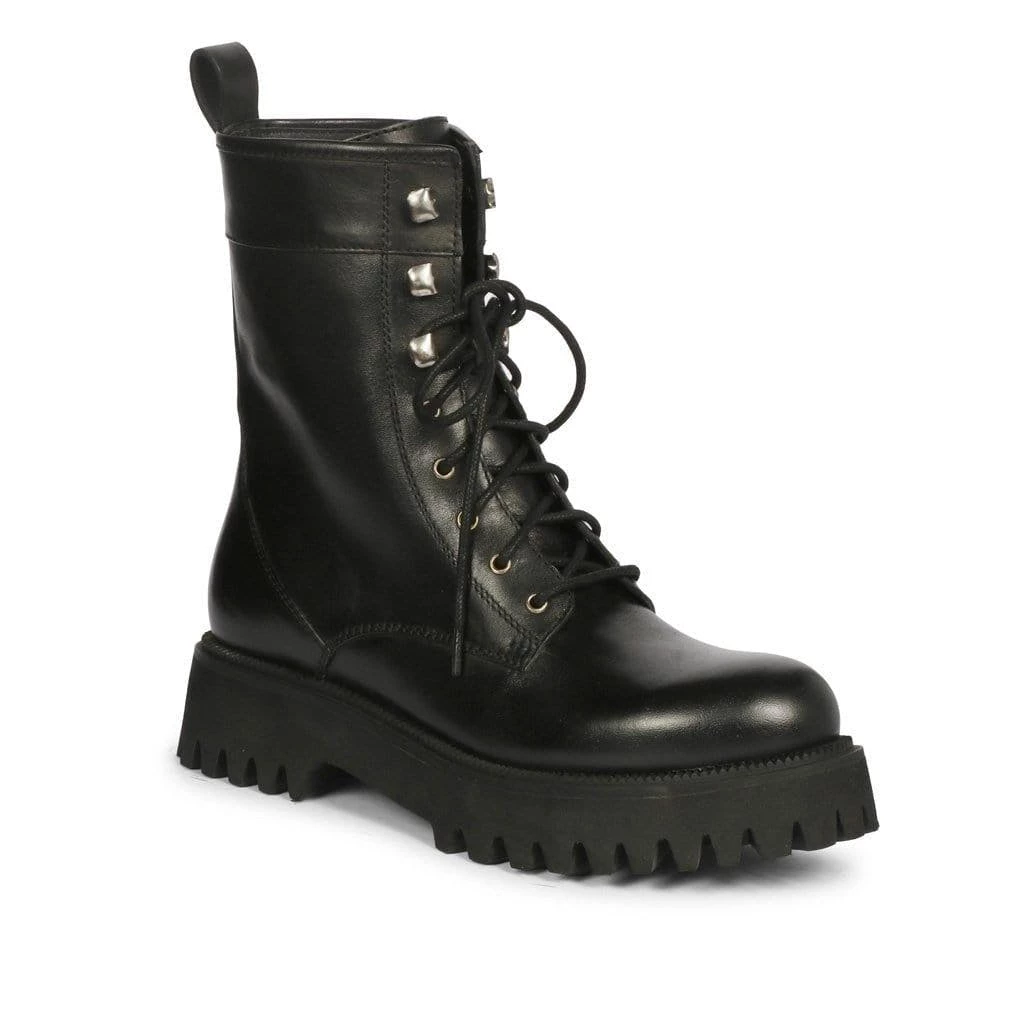 Sophistication and style go hand-in-hand when it comes to Saint G’s latest collection. These black biker boots are crafted from a premium leather upper, breathable PU lining, and padded insole. Featuring lace-up front, metal eyelet with metal hooks, comes with a slip-resistant Eva biker sole which ensures that you do not slip or fall on any surface. Leather upper, stitching accents, rounded toe, and leather pull-up tab complete the design.Pair these trendy combat boots with jeans to shorts or with a skirt. These boots are a surefire way to top off any outfit.