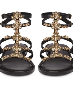 Add these embellished leather sandals from SaintG shoes to your new-season closet. These cage design highly recommended sandals are crafted from premium leather with luxurious leather lining and sole. Easy to wear slip-on style featuring double buckle fastening to the ankle, jewel adds detail to the strapping. Has a padded leather insole and leather sole.