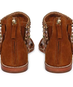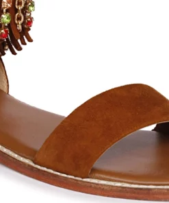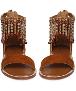 Be the trendsetter in this pair of anklet jewel sandals from saint g. these elegant sandals will be sure to add sparkle to a summer’s evening. These luxe sandals are crafted from premium leather upper, leather lining, and leather insole. Easy to wear slip-on style featuring back zip closure. The natural leather sole provides you with good traction.