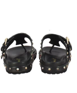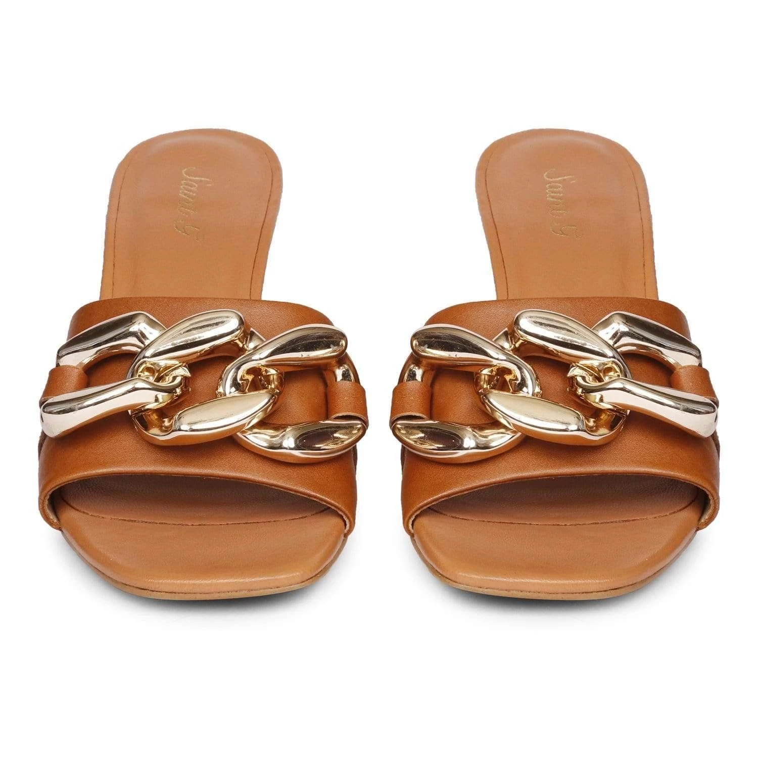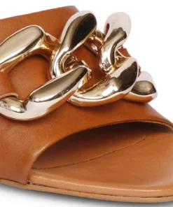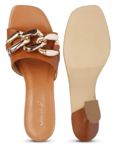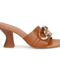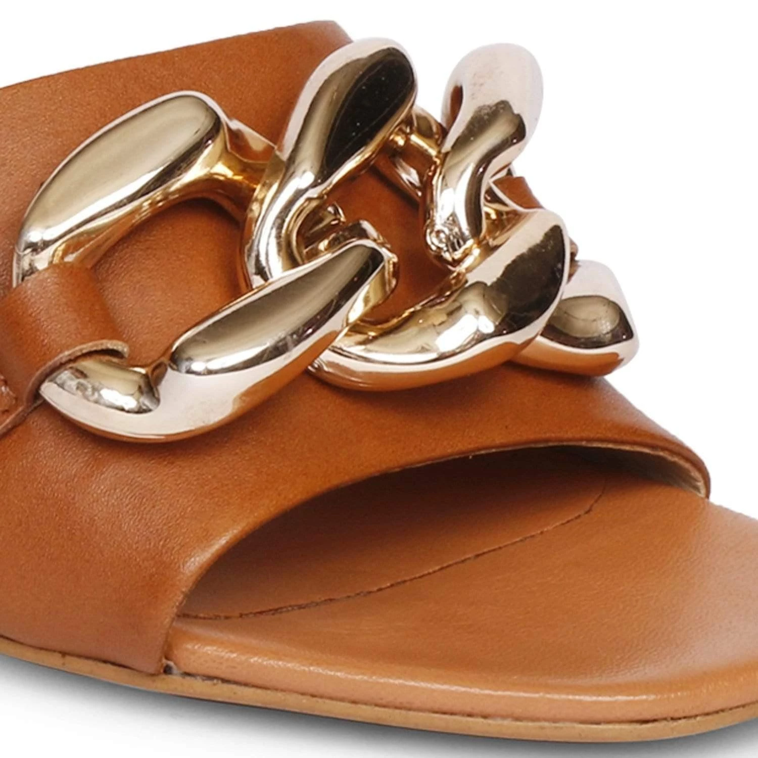 Amazing design and fit. Featuring a style that makes it easy to wear, these gorgeous and comfy Melissa slides with wide front strap accented with gold metallic chain trim. highly crafted from genuine leather upper, nude color leather lining and padded leather insole. The natural tunit sole provides you with good traction. This gold chain embellished heel will lend a stylish look to your outfit. Complete with a medium Stilleto heel.