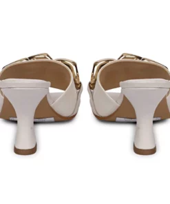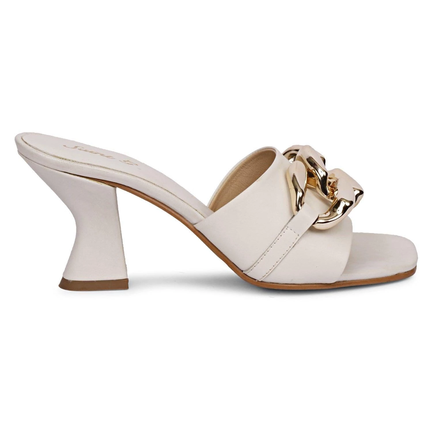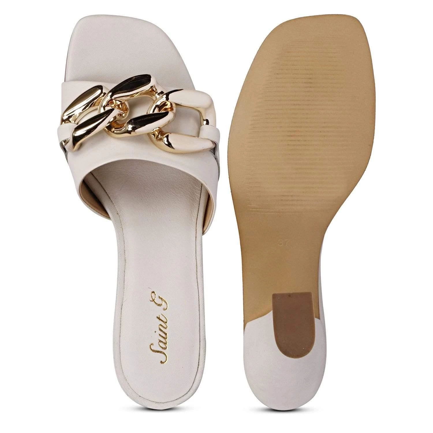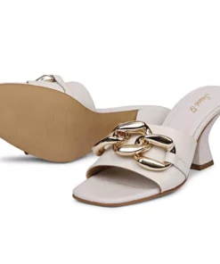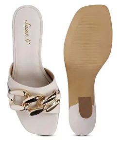 Amazing design and fit. Featuring a style that makes it easy to wear, these gorgeous and comfy Melissa slides with wide front strap accented with gold metallic chain trim. highly crafted from genuine leather upper, nude color leather lining and padded leather insole. The natural tunit sole provides you with good traction. This gold chain embellished heel will lend a stylish look to your outfit. Complete with a medium Stilleto heel.