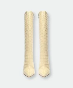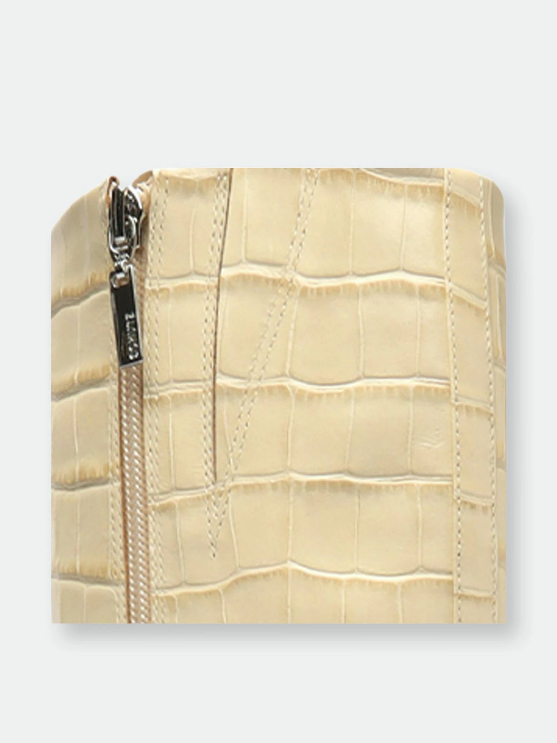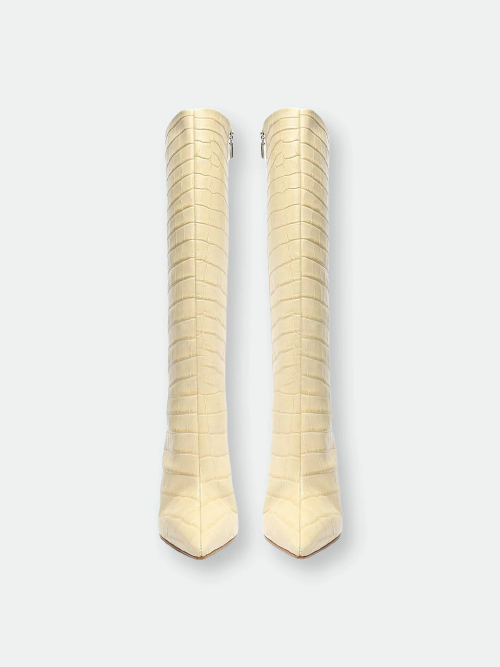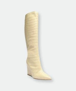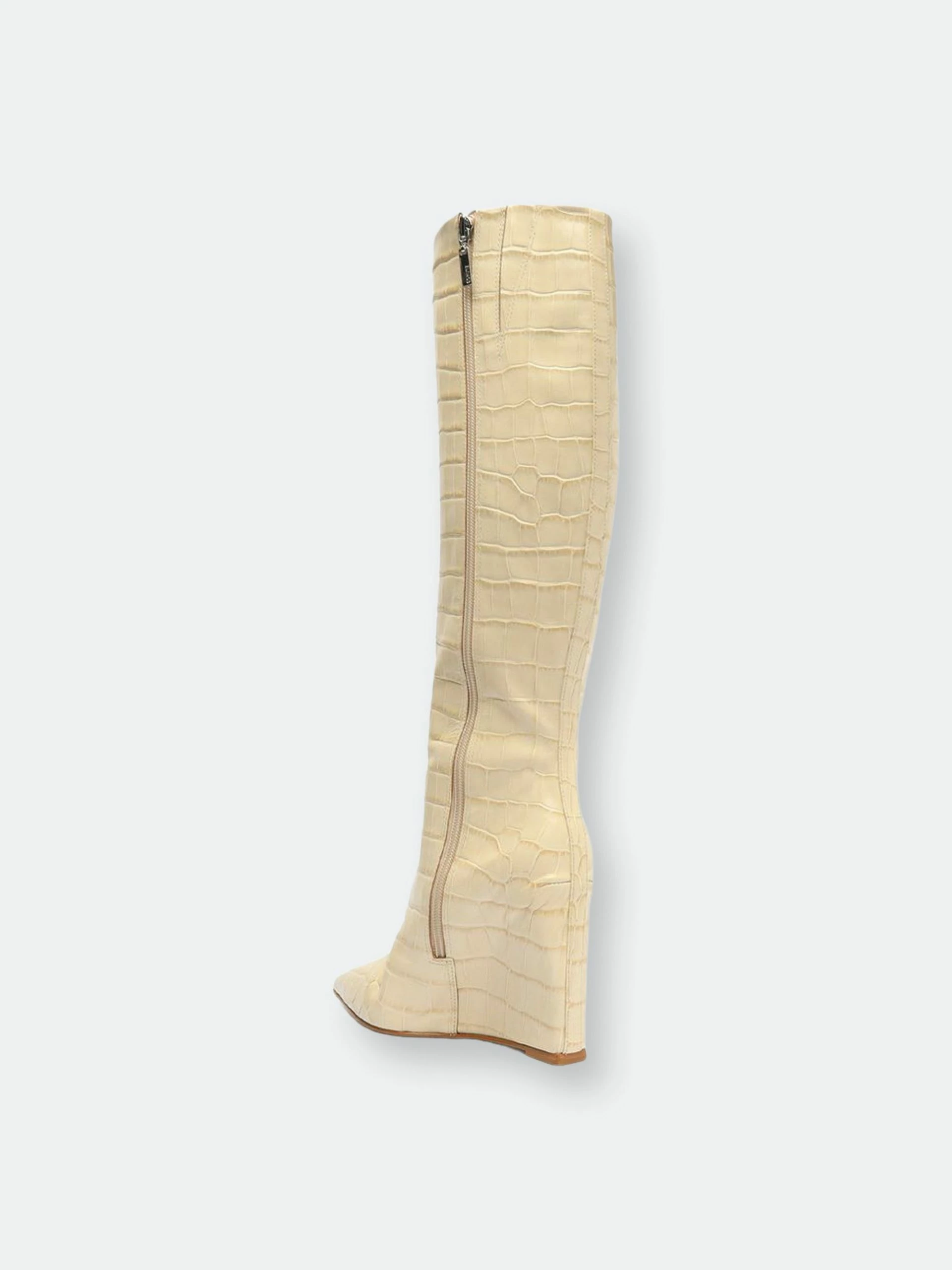 The Asya Up Boot features a wedge heel and crocodile-embossed leather upper. This sleek day-to-night boot is finished with a pointed toe.