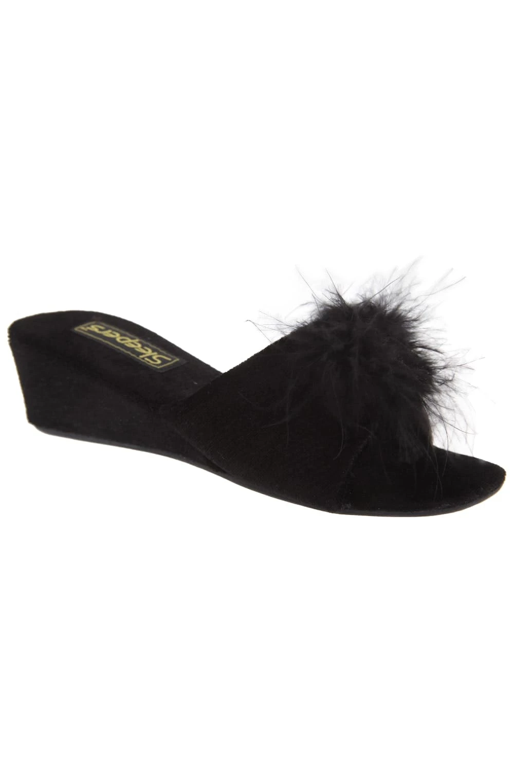 Sleepers Womens/Ladies Anne Jewelled Rosette Boa Mule Slippers (Black)