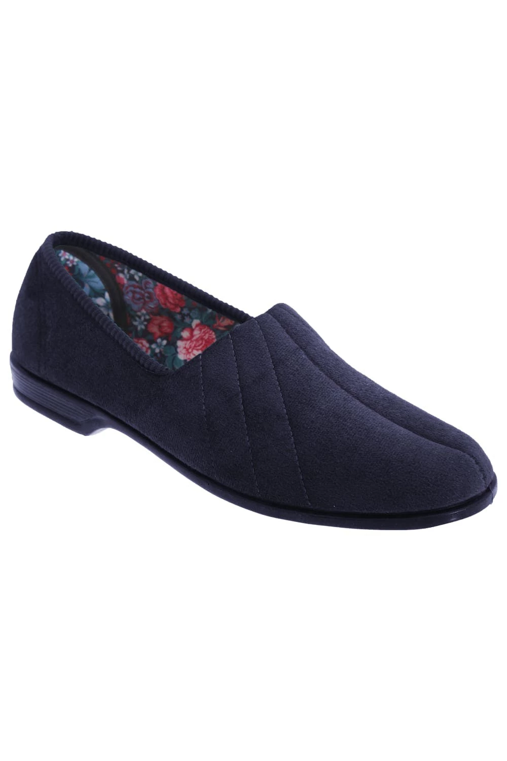 Sleepers Womens/Ladies Audrey III Roll Top Velour Slippers – Navy Blue