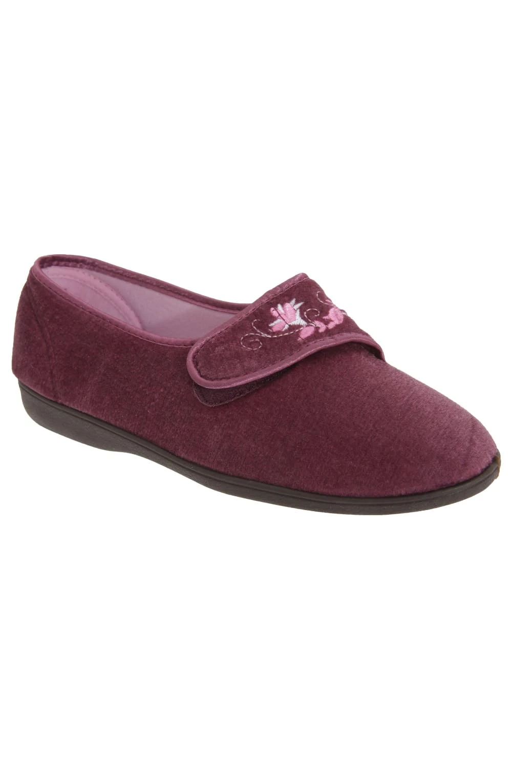 – Touch Fastening Embroidered Slipper.- Velour Upper.- Machine Washable.- TPR Sole.- Upper: Textile, Lining: Textile, Sole: Other..- Gender: Women
