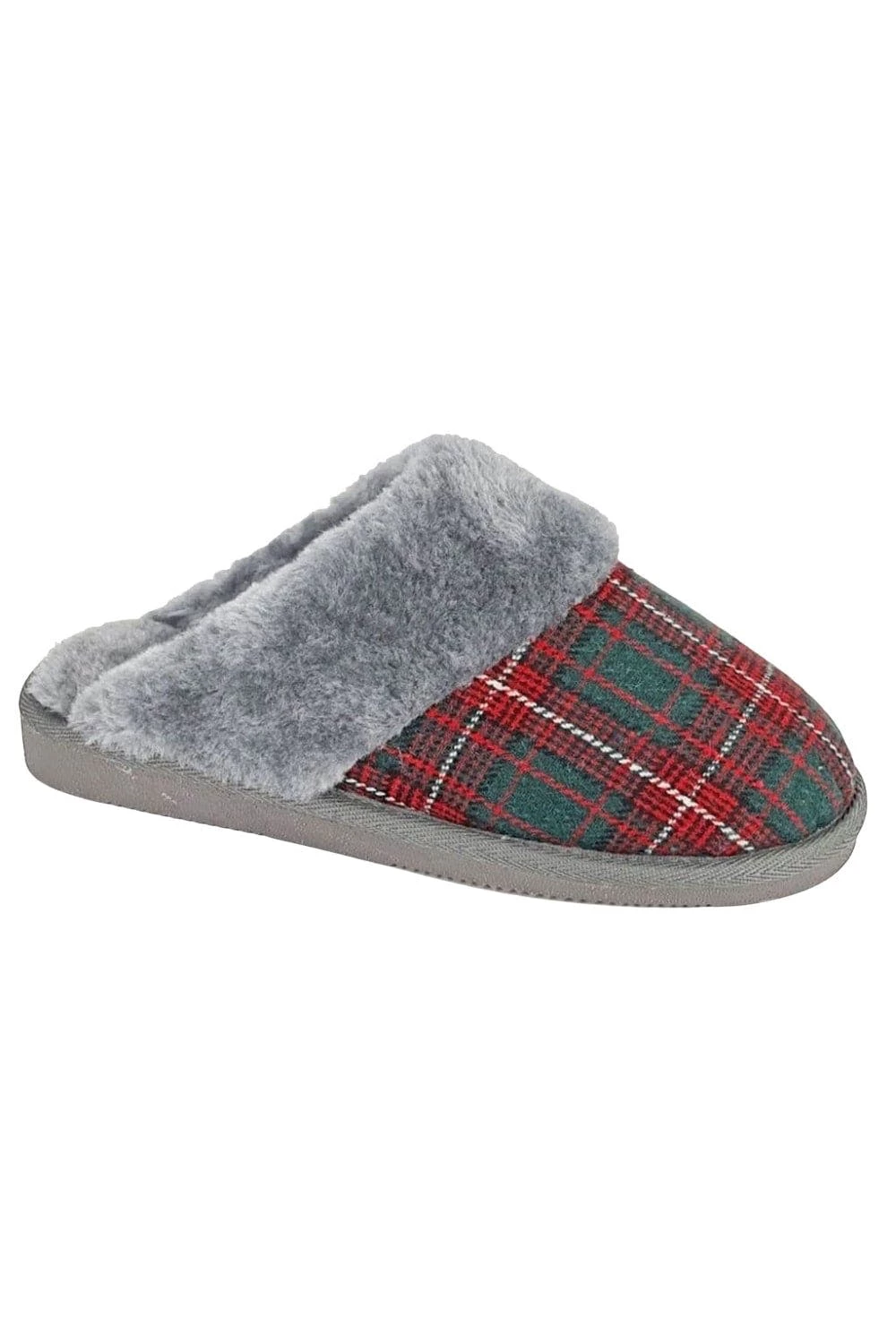 – Lining: Faux Fur.- Outsole: Textile.- Fastening: Slip-In.- Faux Fur Sock.- Flat.- Design: Checked, Logo.- Toe Style: Round.- Packaging: Boxed.- Style: Mules.
