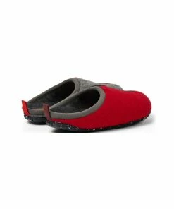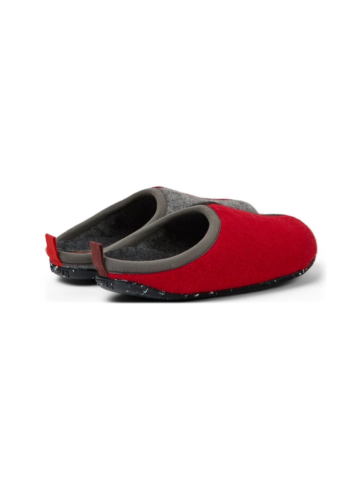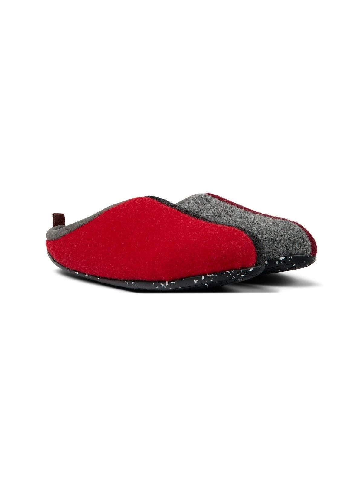 Gray, red, and burgundy wool women’s slippers with EVA footbeds and rubber outsoles.