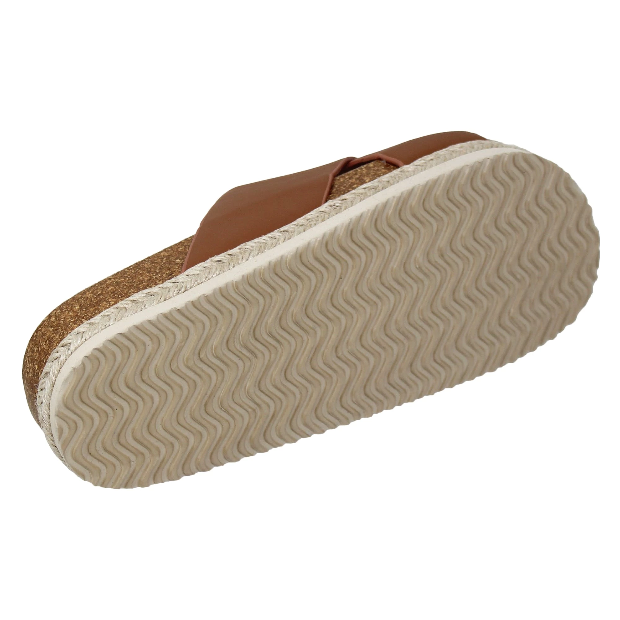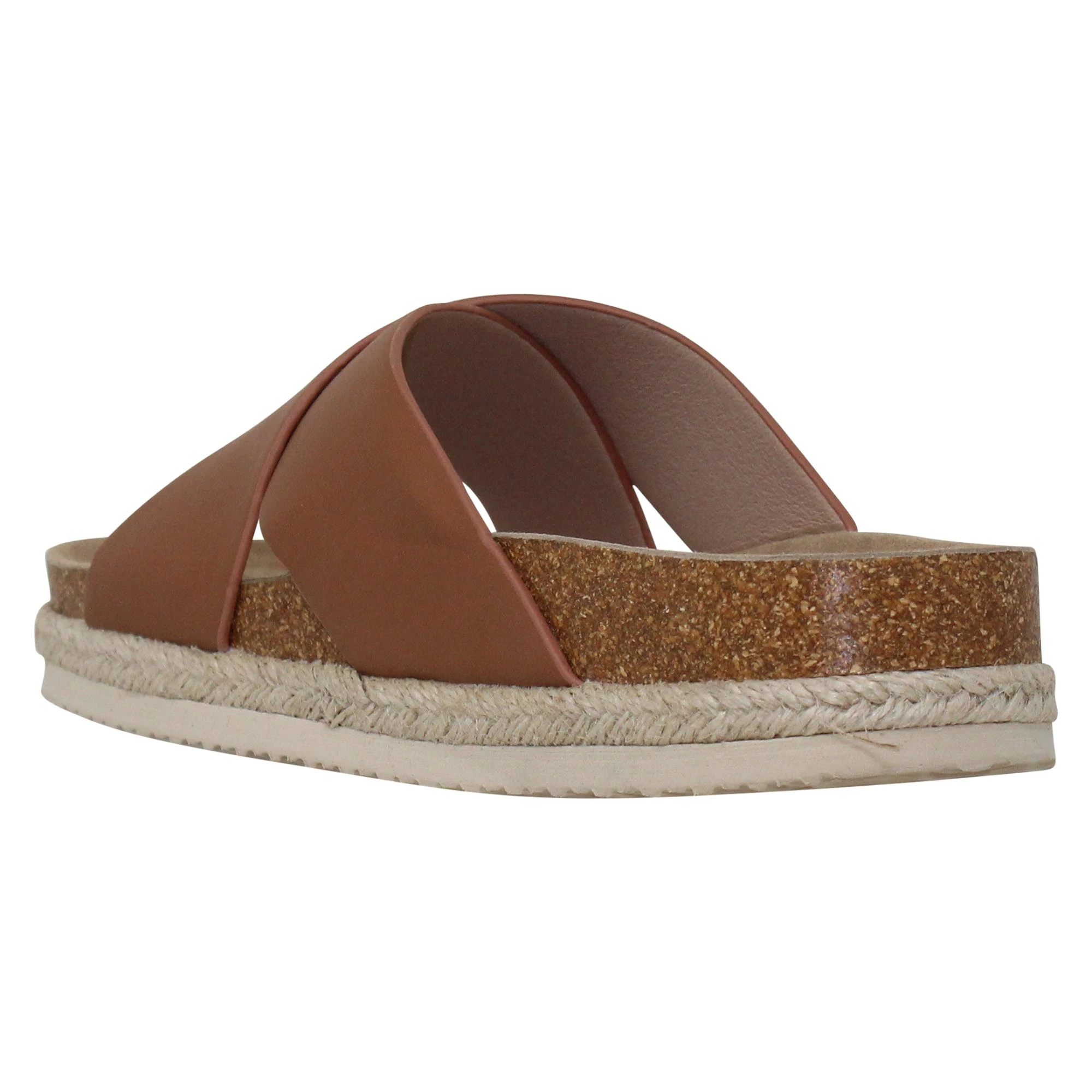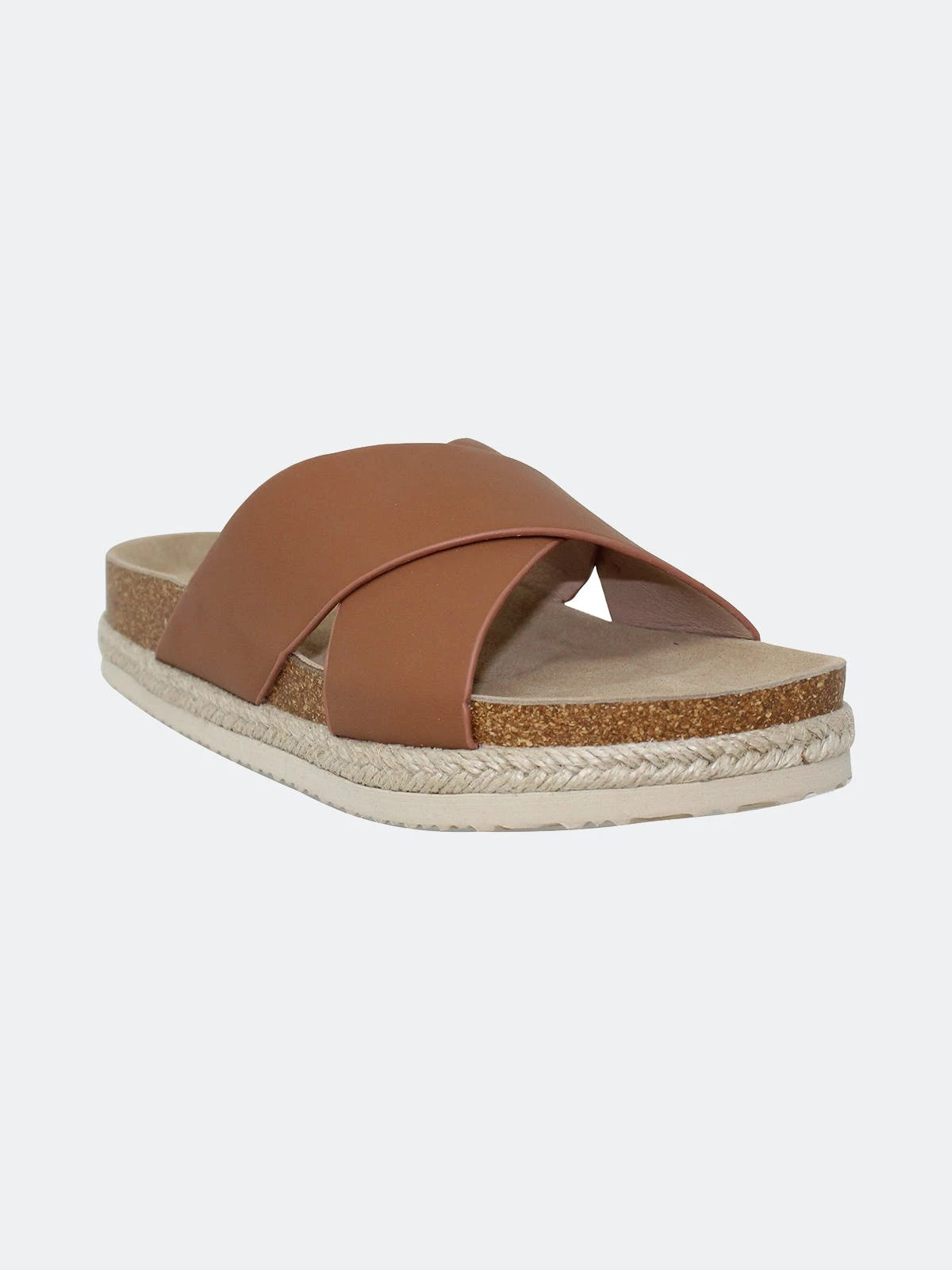 A casual everyday sandal is enhanced by smooth crisscrossing straps and tightly braided jute that contours the platform.