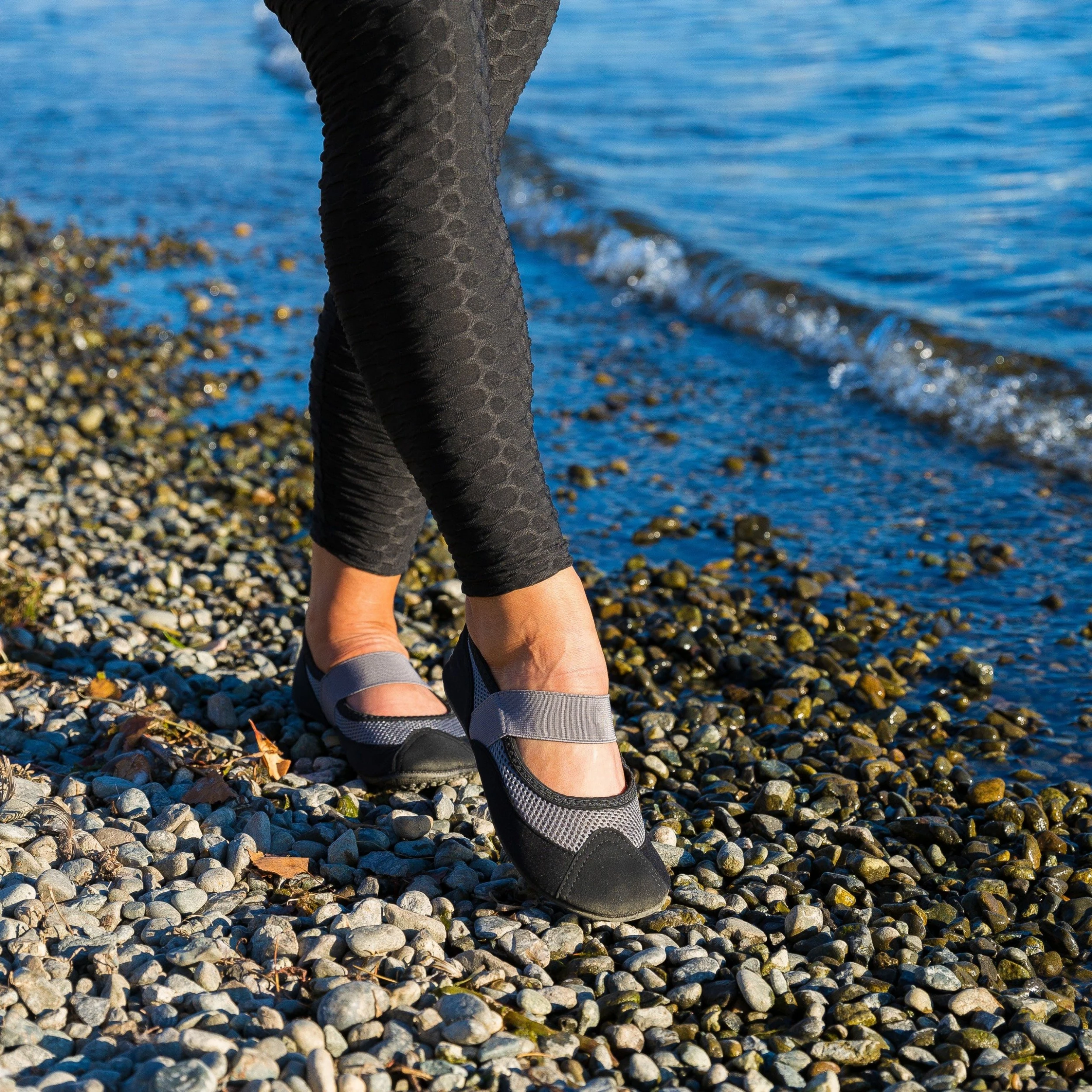 Designed like your favorite Mary Jane, these water, yoga, sports shoes are cute and completely functional for land and sea. The removable footbed and upper fabric have drainage so water doesn’t get trapped inside, while a mesh fabric keeps sand and rocks out. Elastic strap closure is flexible to your perfect fit and ensures the shoes won’t fall off while you swim, in the water, working out, or Yoga exercises. Easy to wear from the beach to the car to the GYM.
