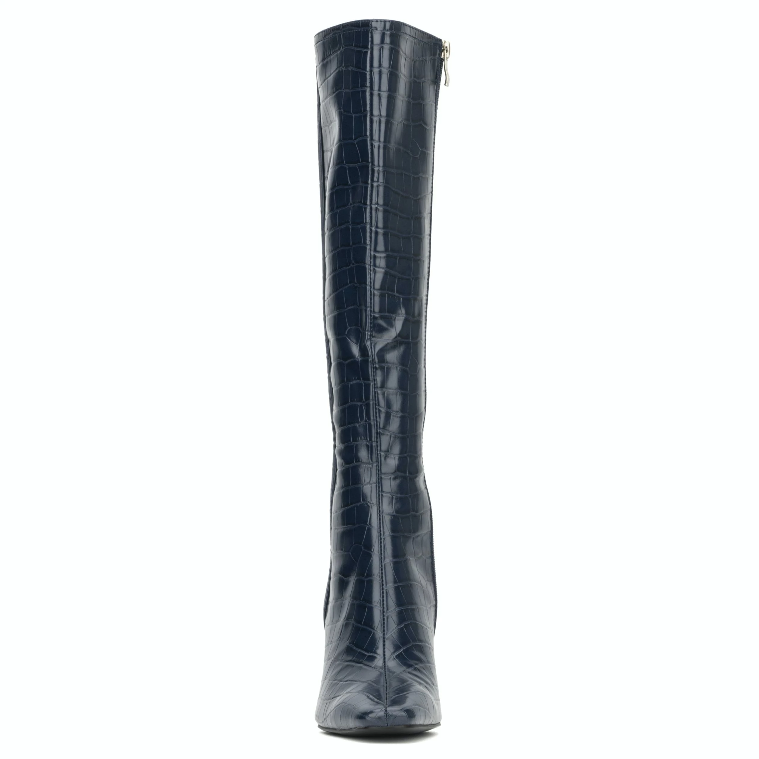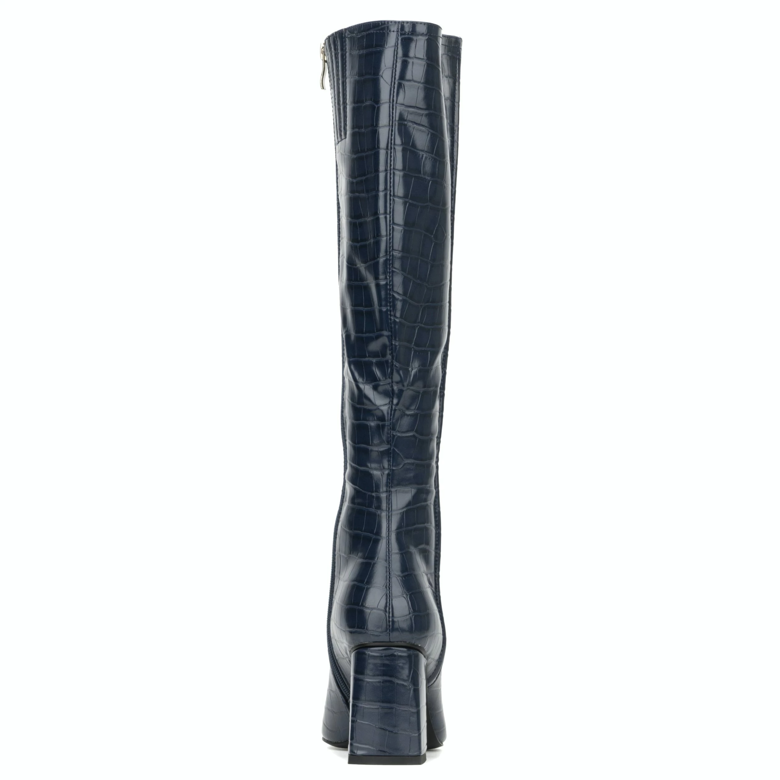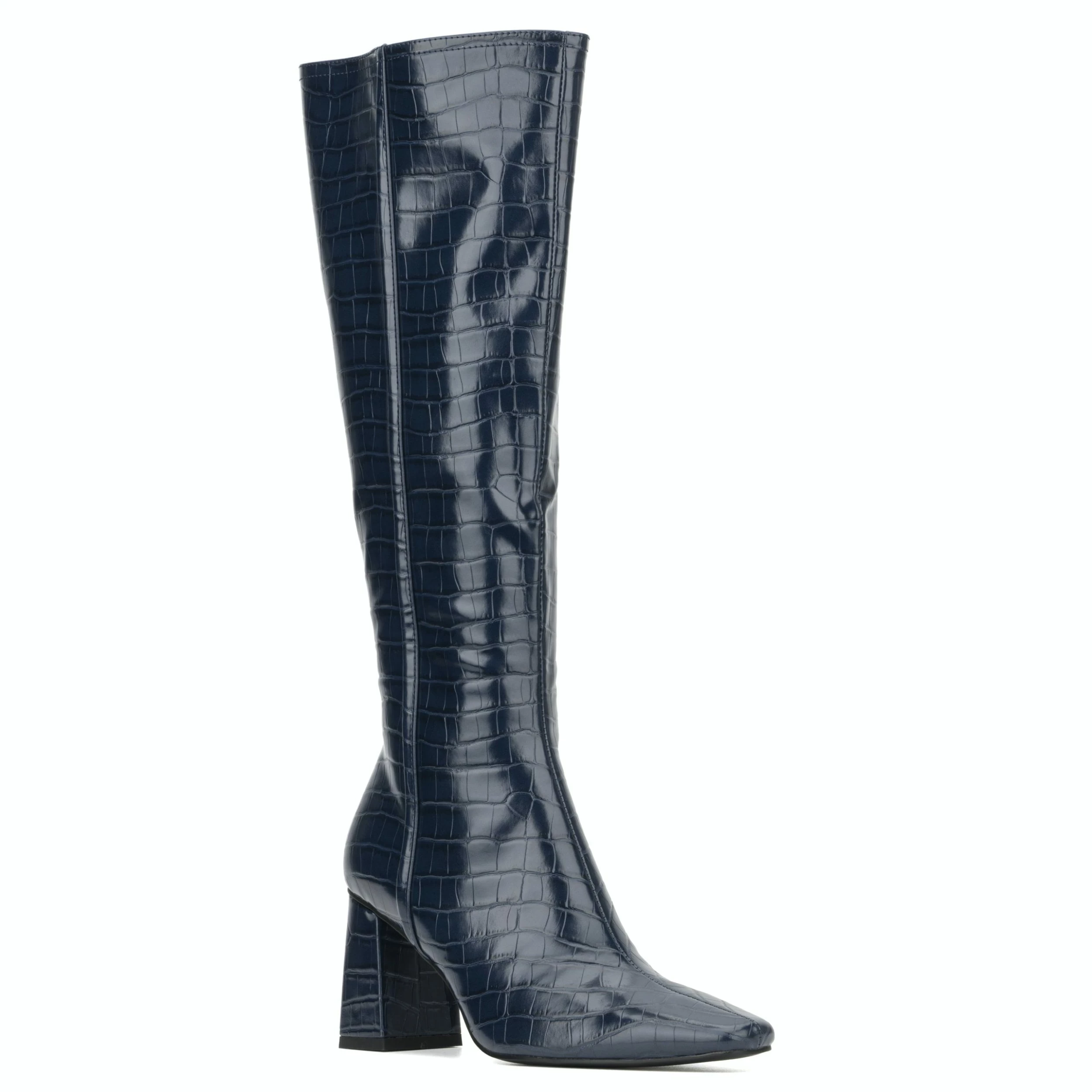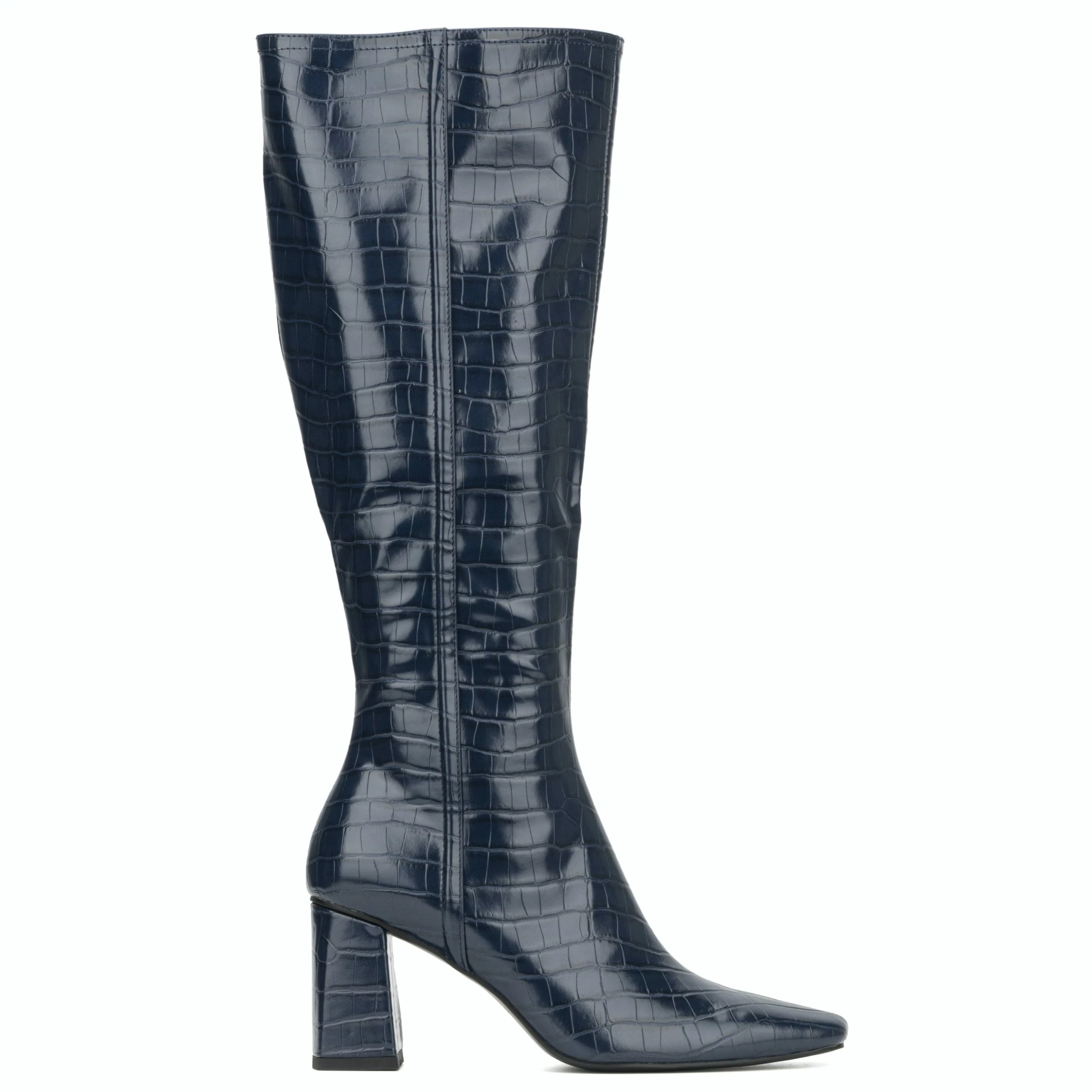 The Angelica tall boot boasts an elegant crocodile effect, block heel, squared toe and inner zipper closure. Your style will shine even on a cold day.