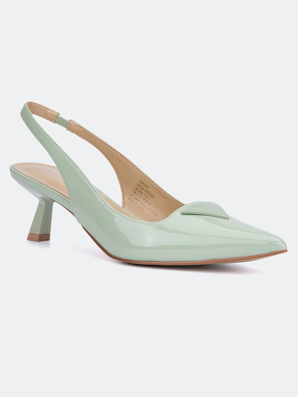 Bring the action! The Alchemilla is a fashionable statement on its own. Features sling back straps with a comma heel that will call for attention.