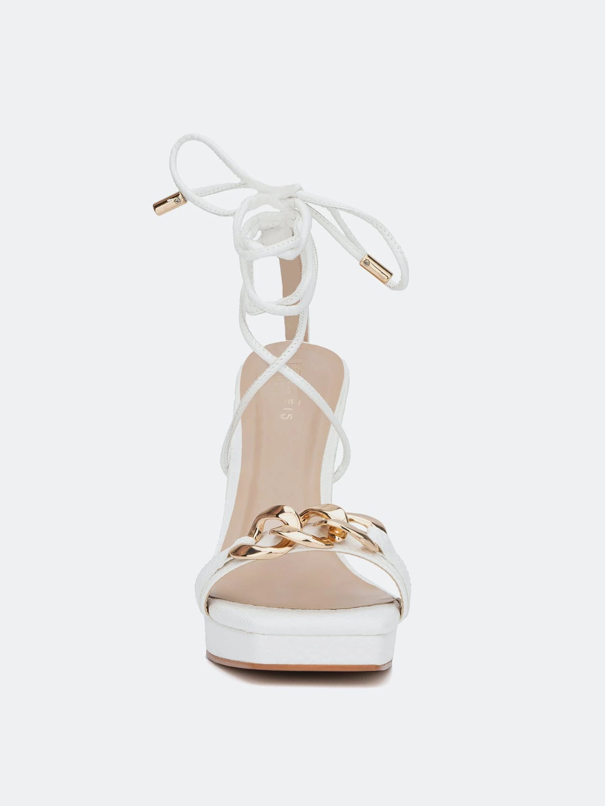 It’s Friday night girl! Step into the party feeling like the diva that you are. Stiletto heels never looked better; the wrap-around straps on the Cassava sandal create a dramatic effect, while the gold detail in the front emphasize its elegance.