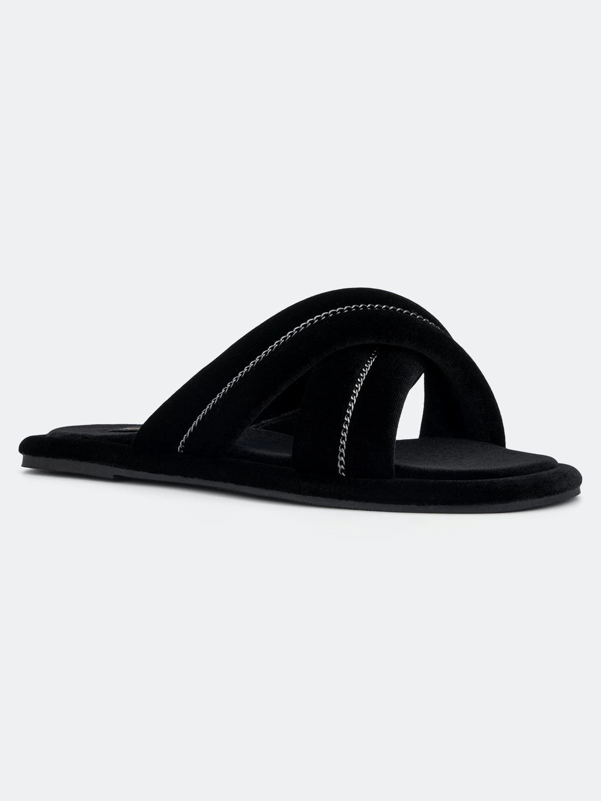 The cross-strap Cecilia has a cozy profile and a velour look that brings your luxury style home. Soft fabrication with a durable rubber sole and matching soft lining for next-to-skin comfort.