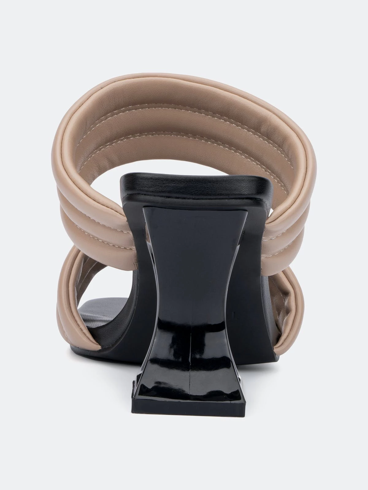 The Chenille is a two- b& padded sandal with flared heel for chic look & a comfortable walking experience. Black sole & heel create a dramatic look, for a loud style that st&s out.