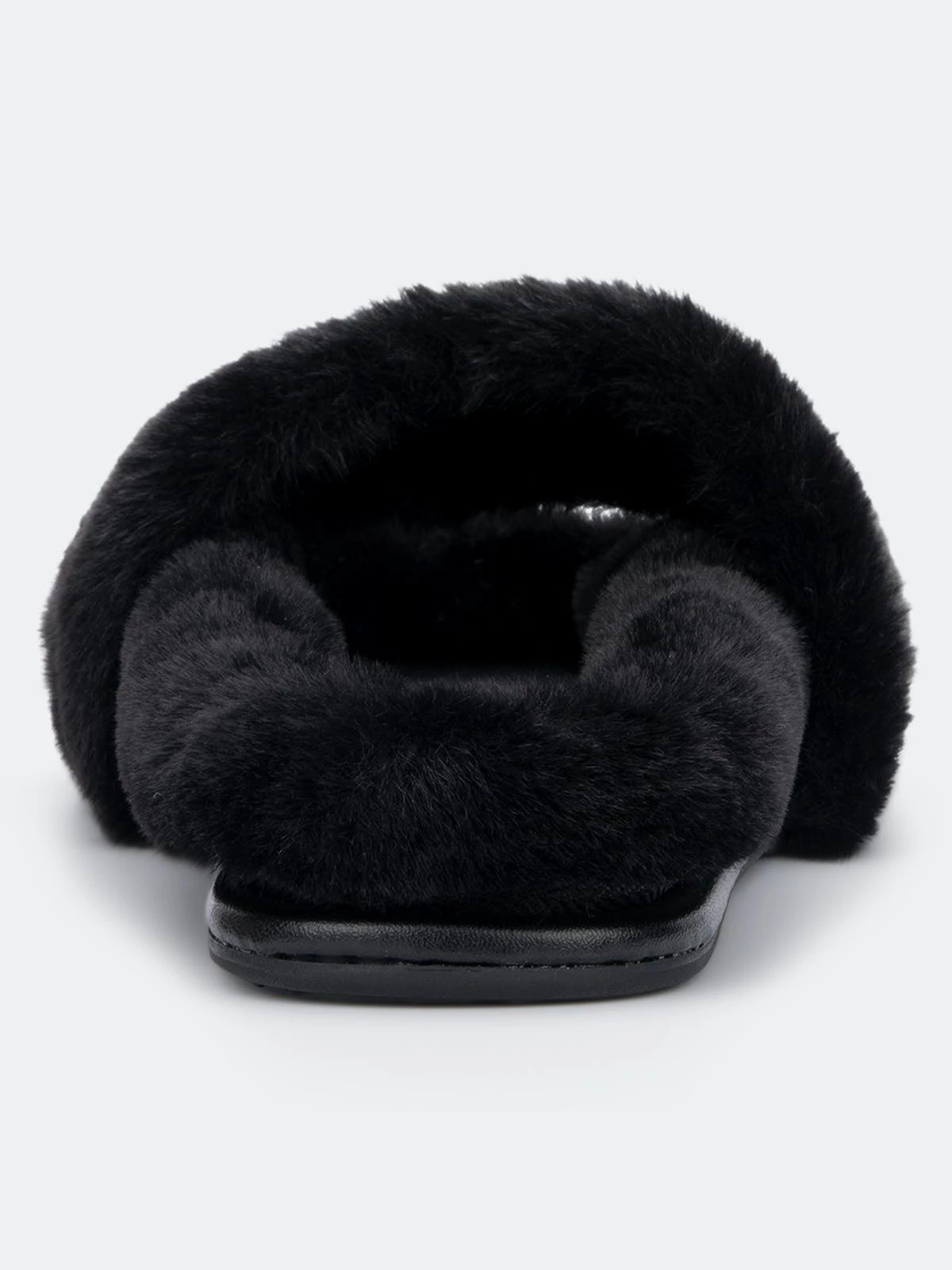 - Materials: Upper: 100% faux fur, Outsole: 100% ethylene vinyl acetate (eva), Lining: 100% faux fur