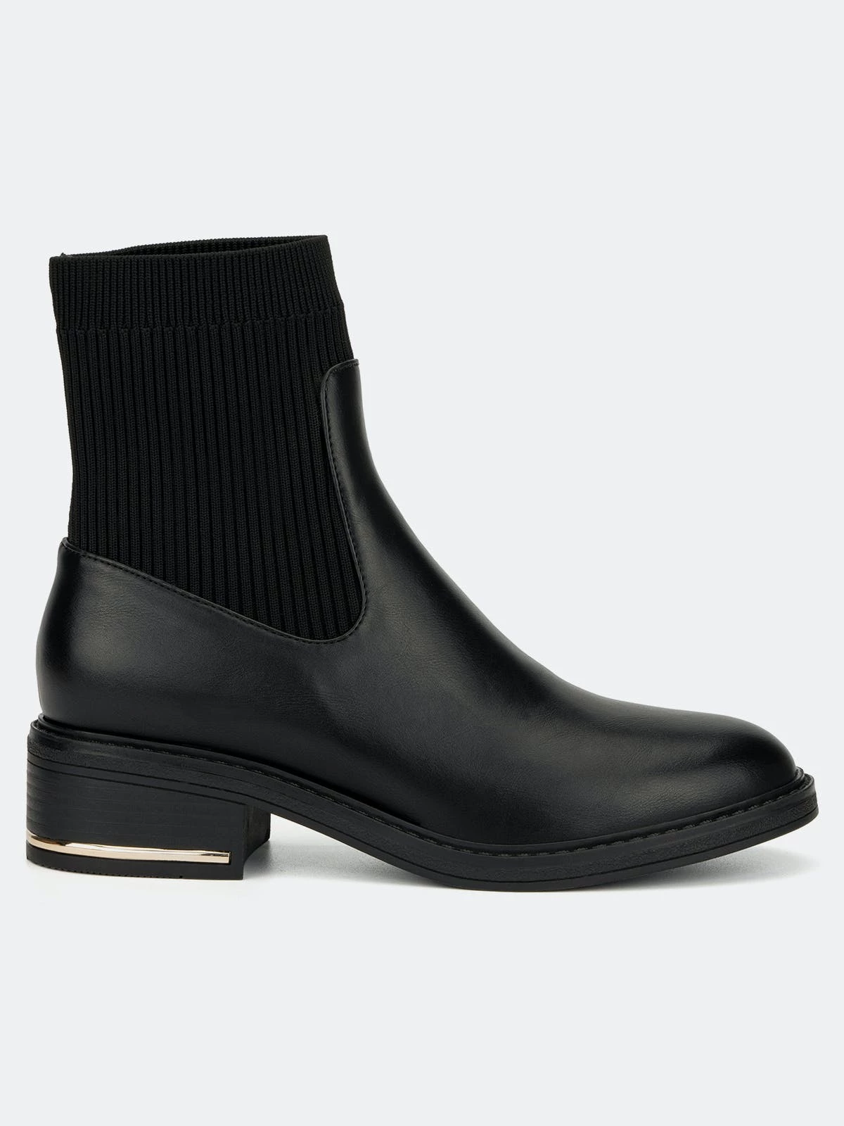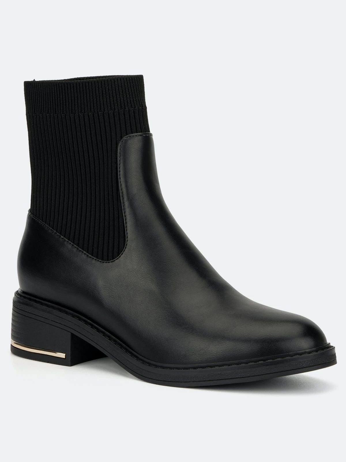 They’ll be talking about your booties for months when you upgrade your outfit with this darling pair. STretch panel at upper for easy dressing and a cute metallic detailing on the short stack heel. Supple faux leather fabrication with a durable rubber sole and soft fabric lining for next-to-skin comfort.