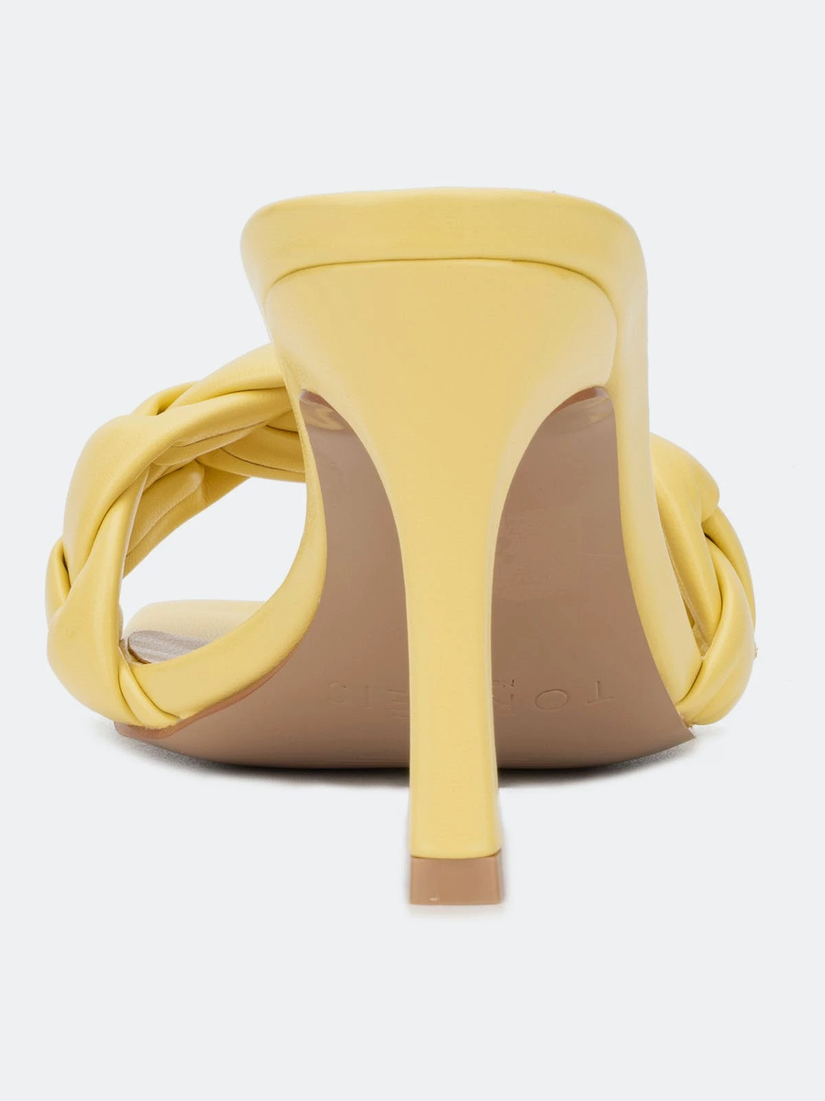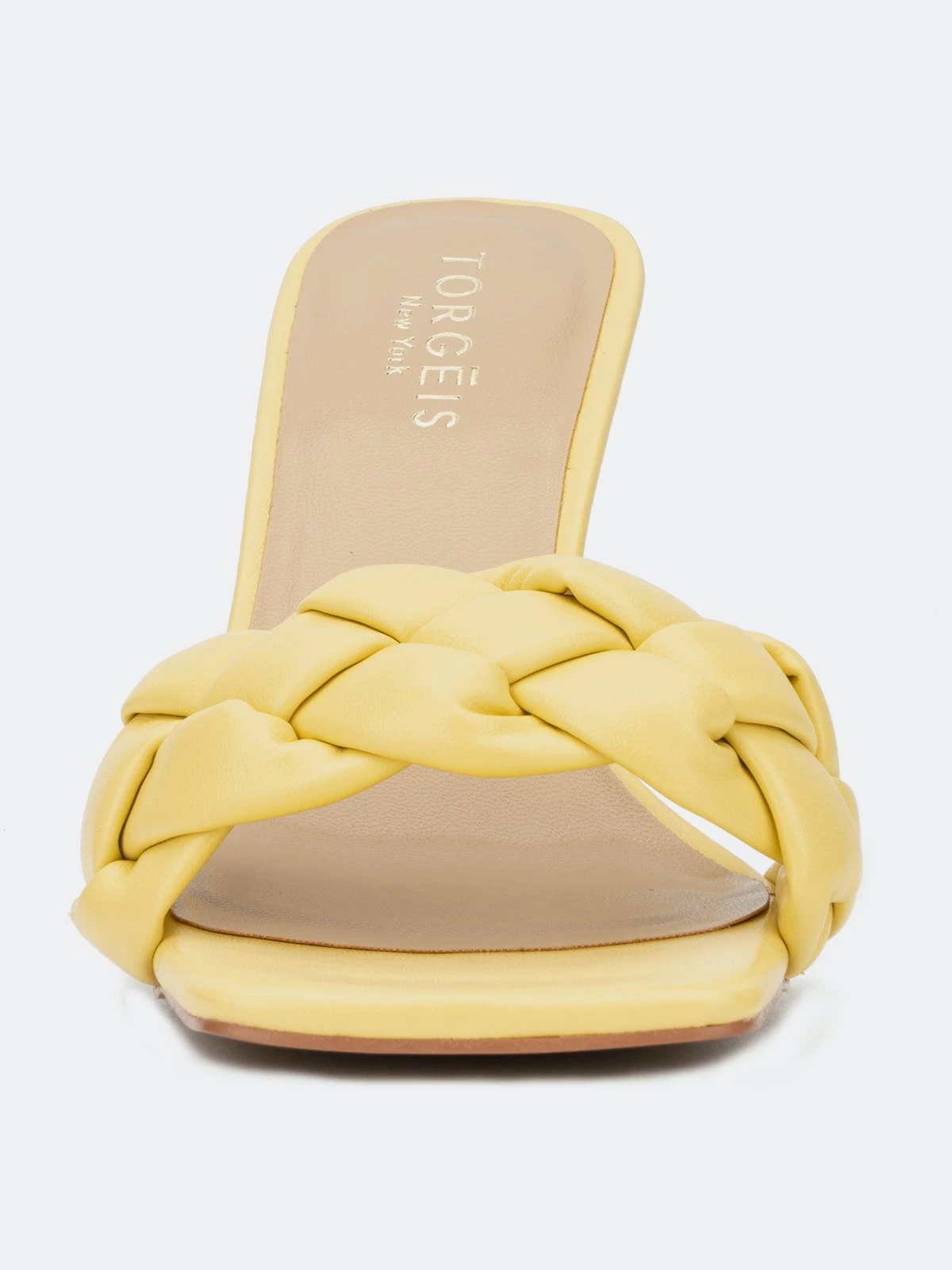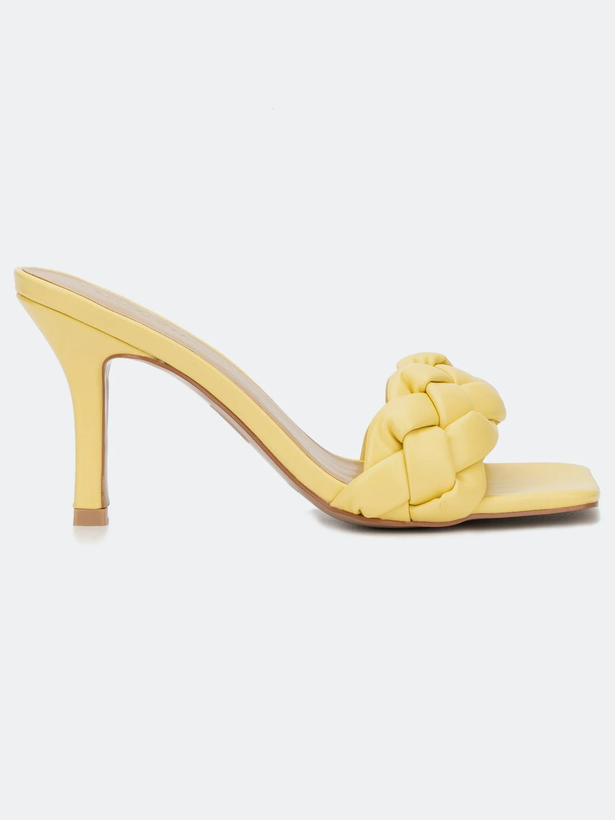 Slide into the party with style wearing the Maraca sandal. Eye-catching sandal with wide braided strap. Sits on a comfortable stiletto heel that will allow you to party all night long!