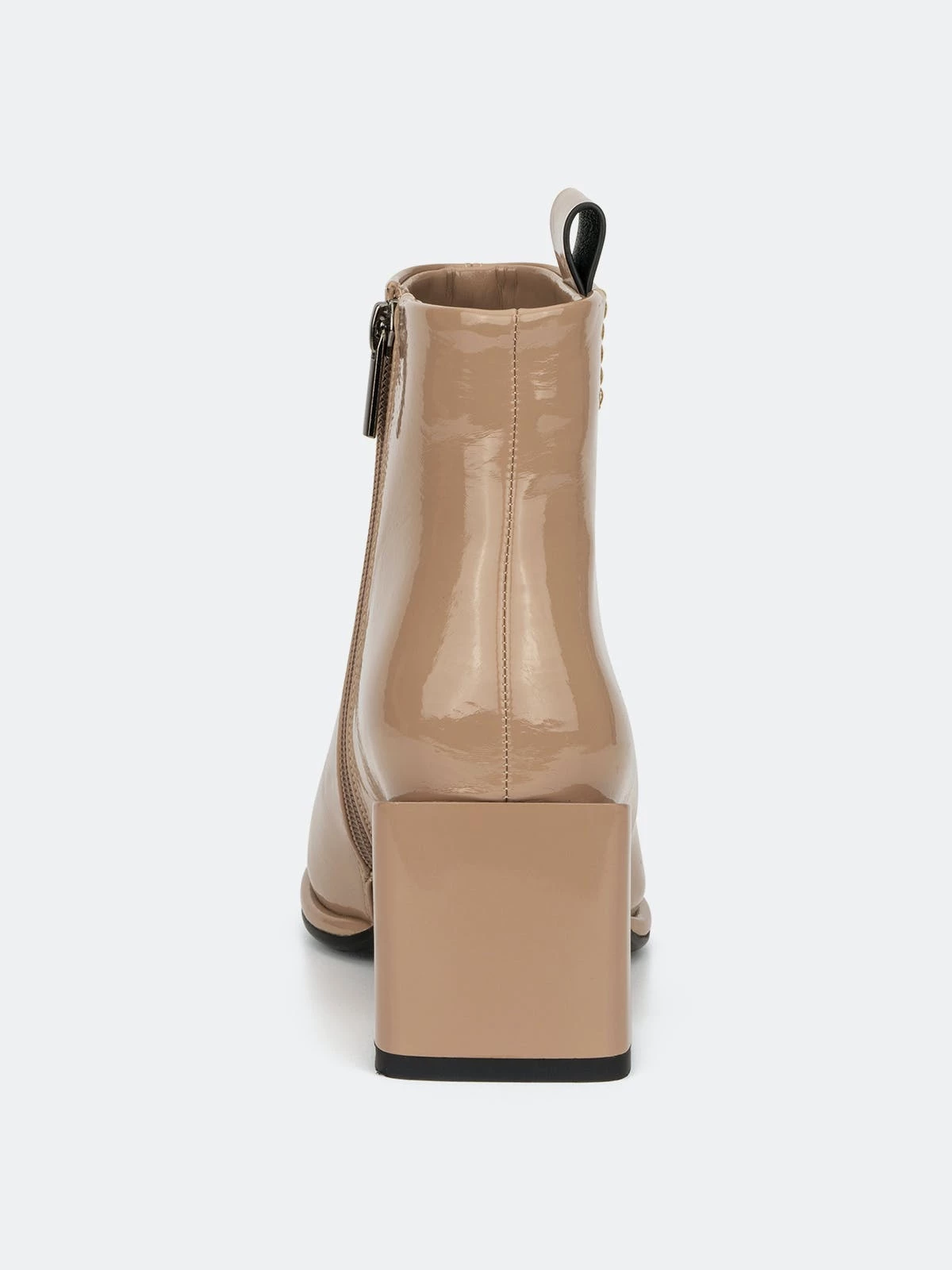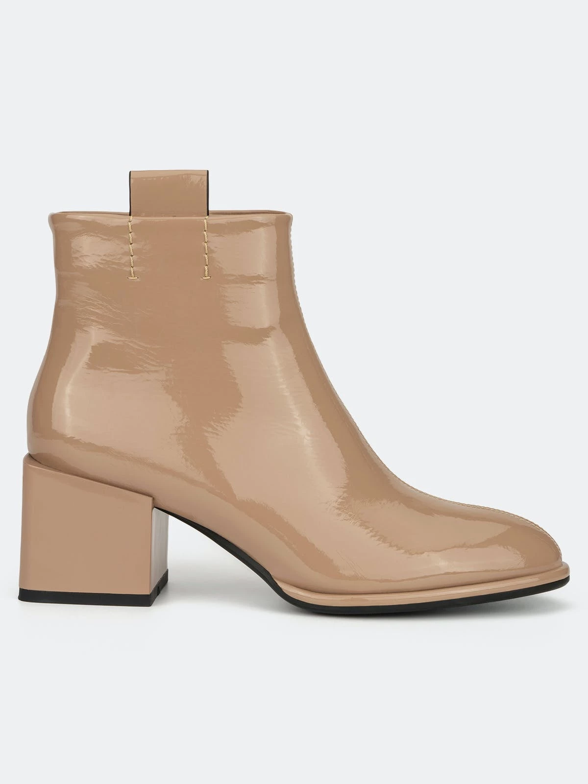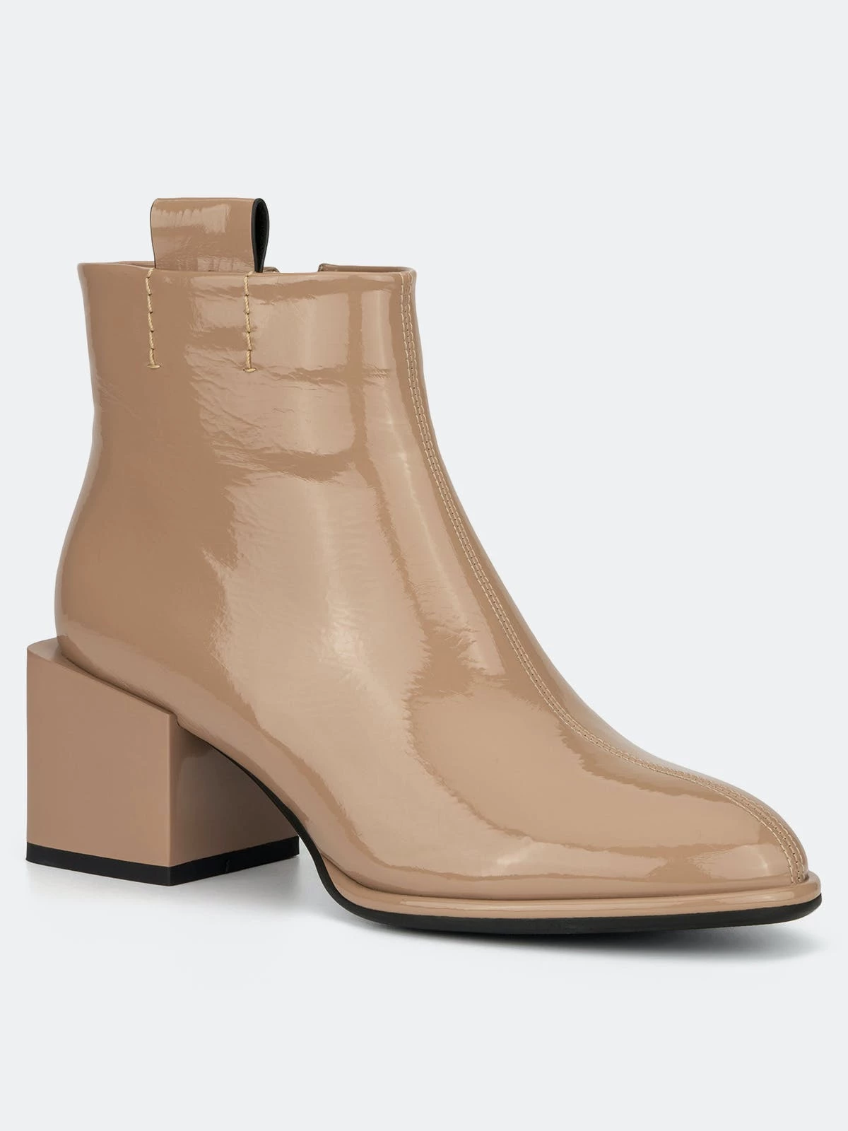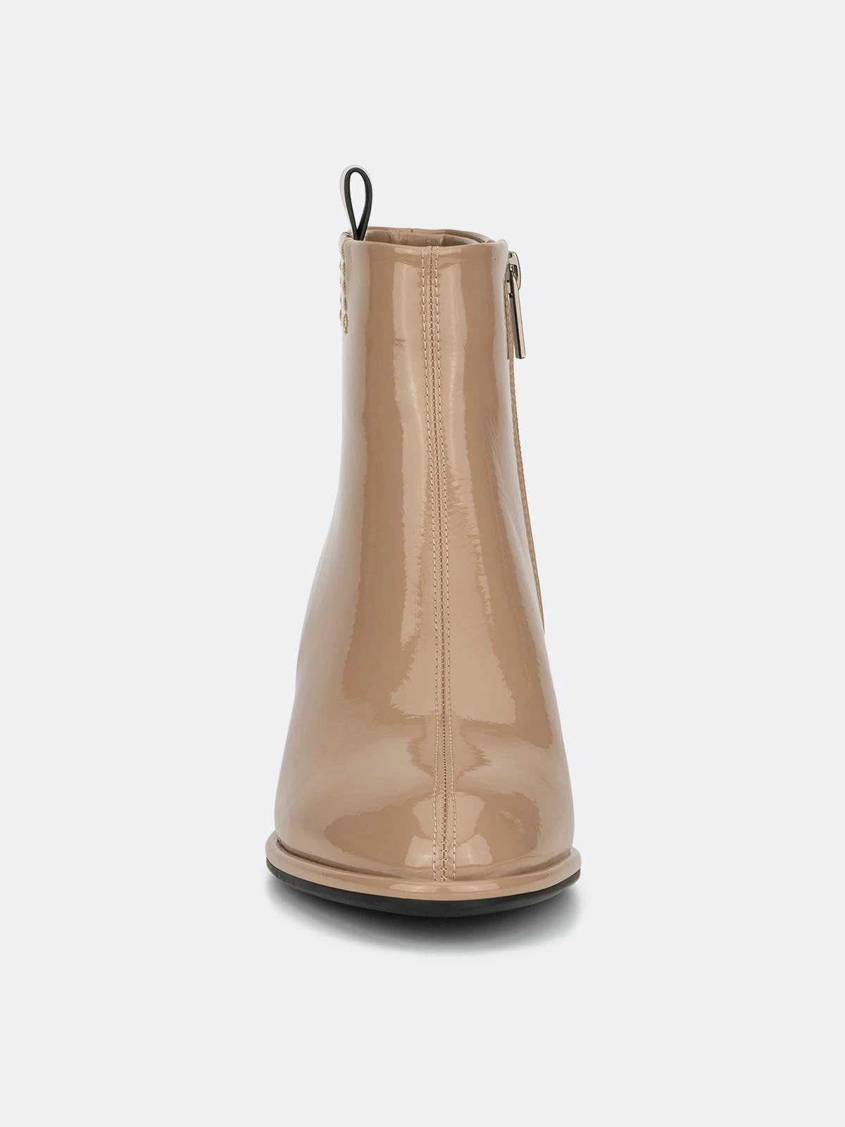 The sleek, leather-sheen look of the MOnty boot is enough to bring a playful upgrade to any look. Stylish point toe, pull-on loops and a set-back stack heel all finish the look. Supple faux leather fabrication with a durable rubber sole and soft fabric lining for next-to-skin comfort.