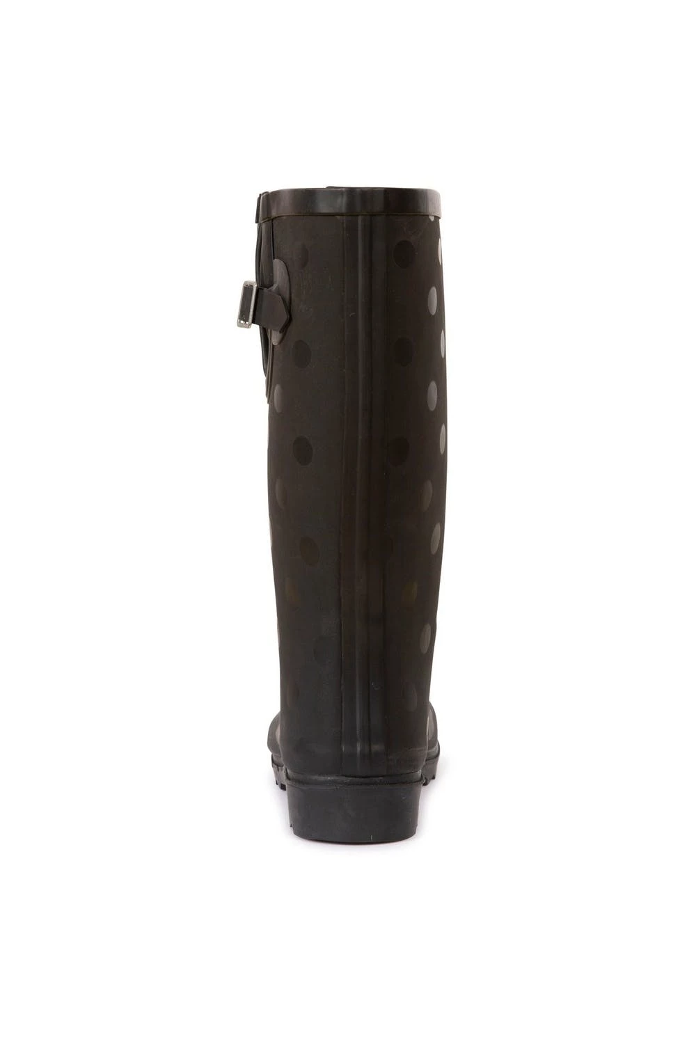 – Adjustable buckle, gusset.- Fabric technology: Waterproof.- Low heel.- Cut: Knee-high.- Design: Logo, polka dot.- Toe style: Round.- Fastening: Slip-in..- Outsole: Durable, gripped