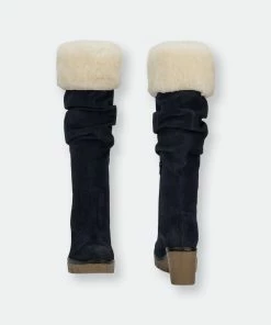 You can conquer the winter wonderland with the cute and toasty Arabella Wedge Boot. Pull-on style tall boot with a gathered, soft suede upper and a fluffy sherpa trim at the collar for a cozy look and feel. Stacked wedge with modest platform and a rubber outsole with added traction.
