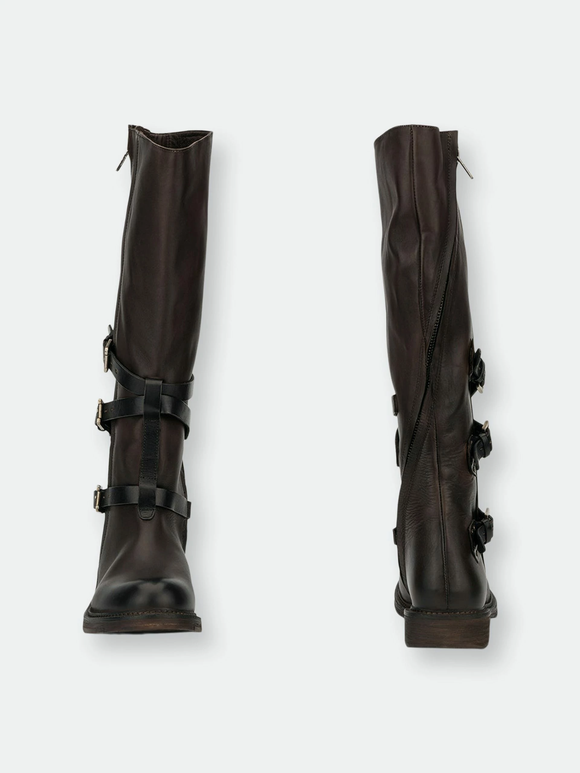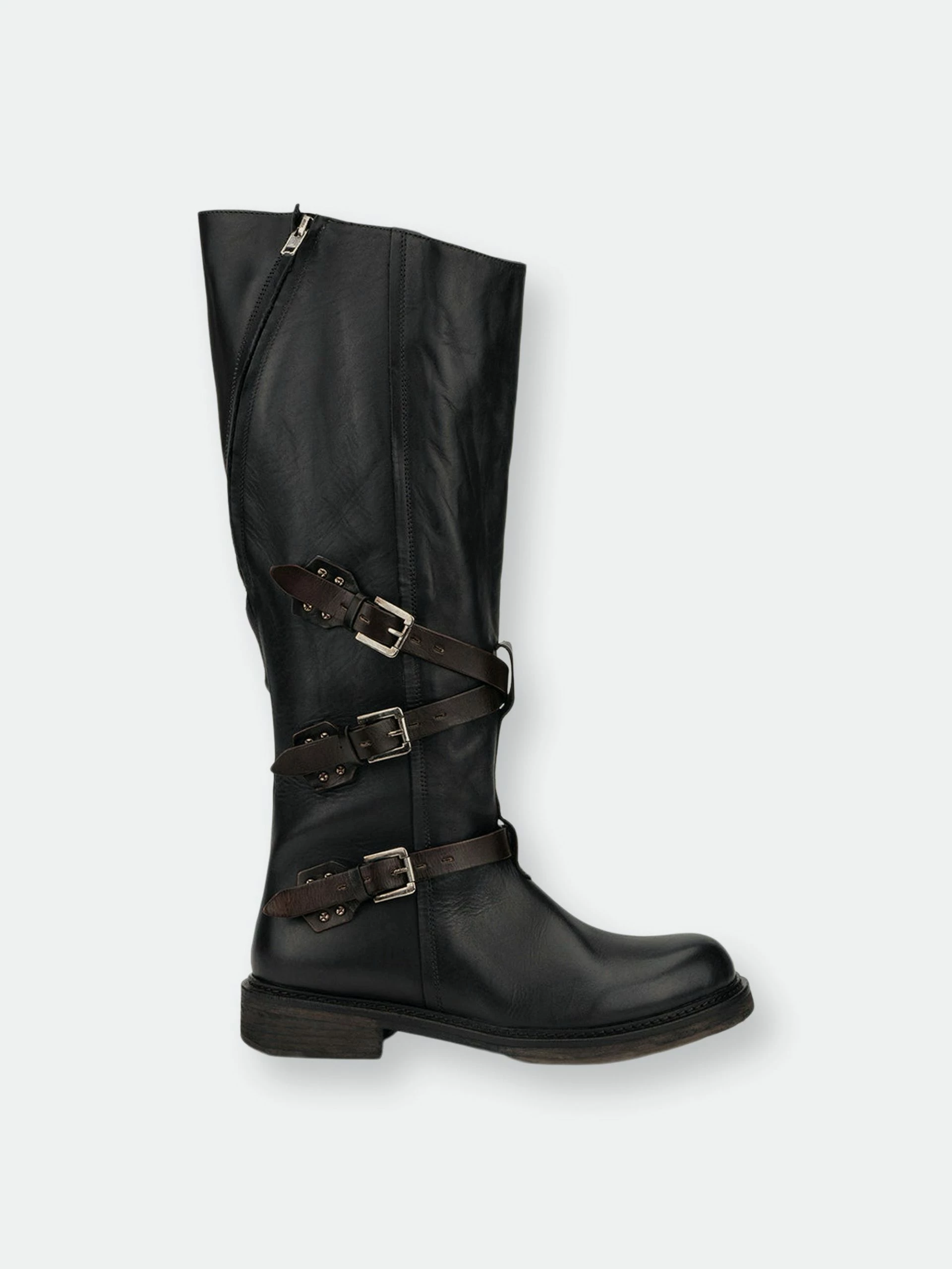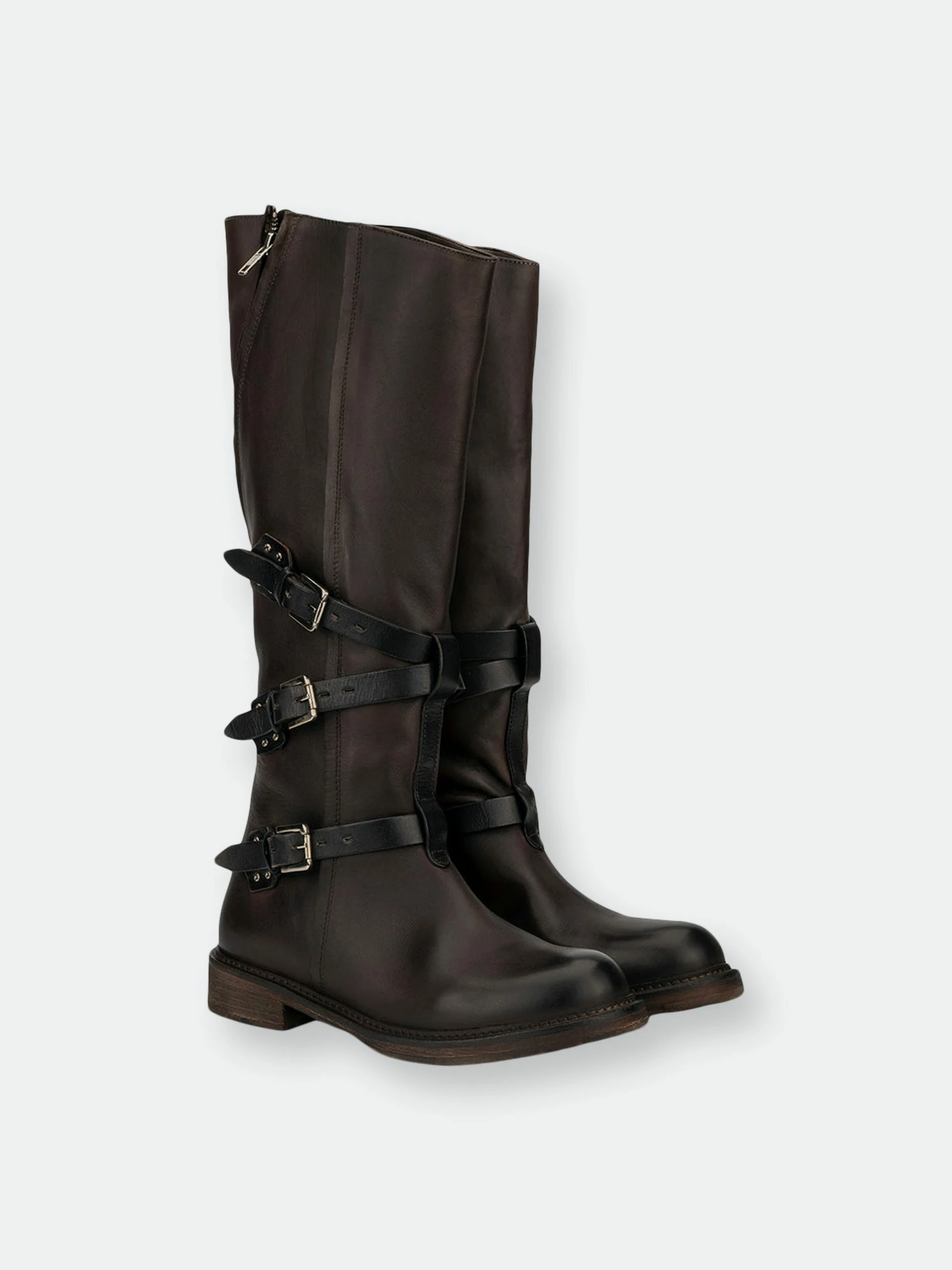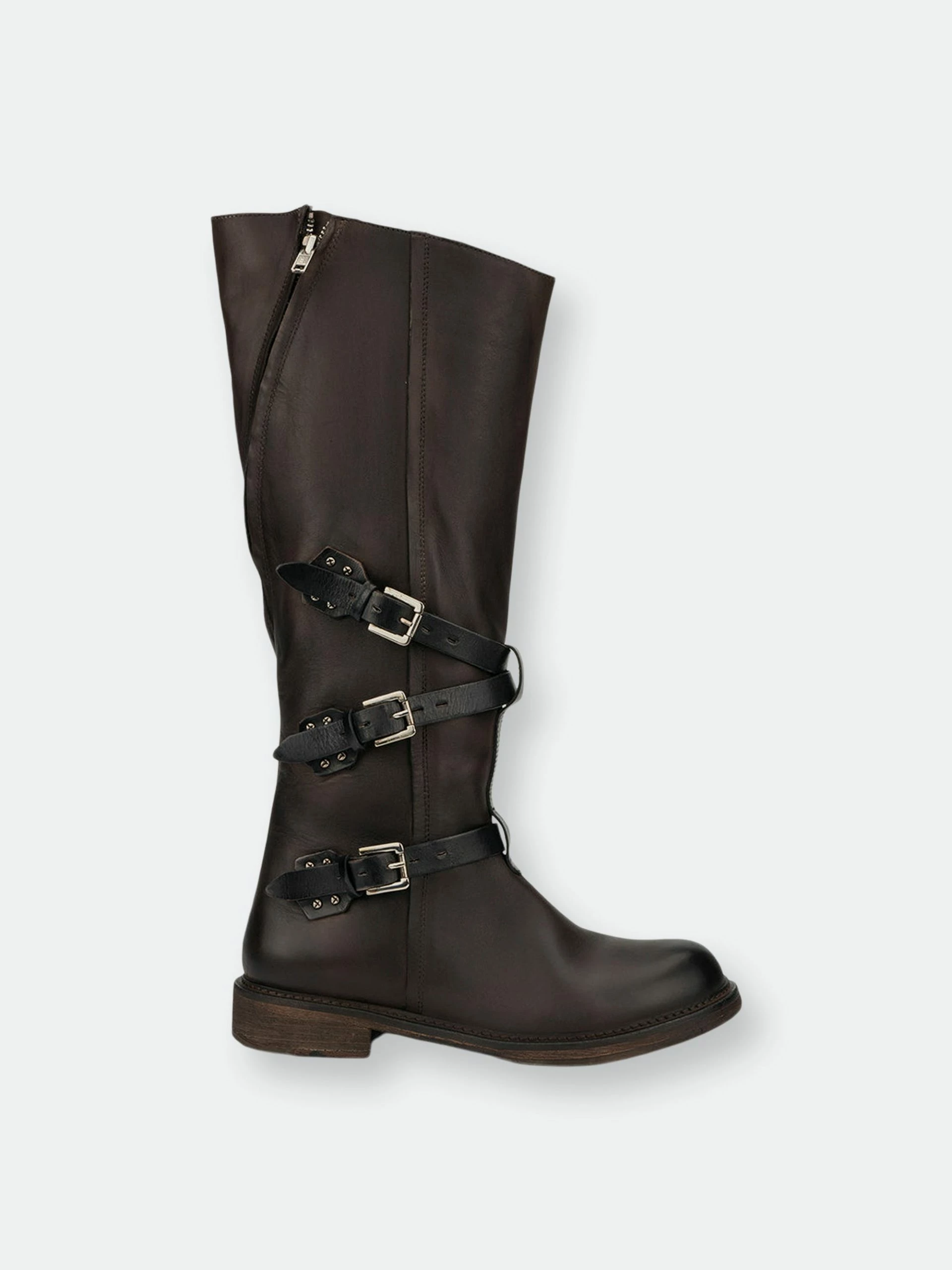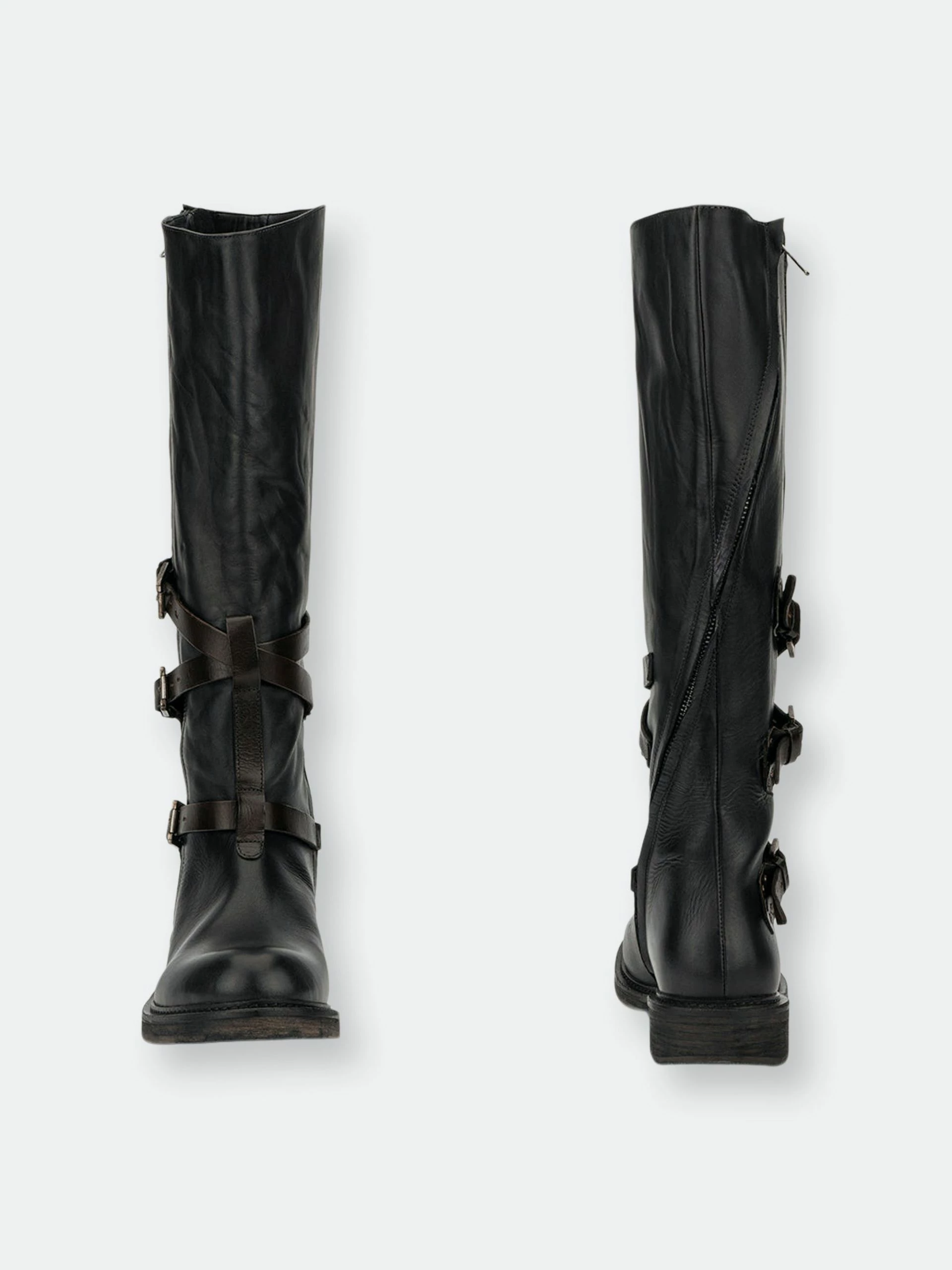 Your entire crew will envy your winter style when you make the scene in the Jenny boot. These rebellious tall riding boots feature a premium leather upper that hits at the knee. The zip-up construction makes on-and-off easy. The details of the almond-toe silhouette, tiered buckle belt feature along the ankle and the casual flat rubber sole make these moto boots the perfect pair.