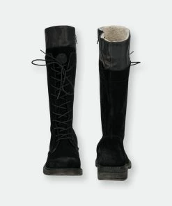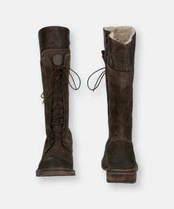 There’s no telling what adventures your days will bring when you have the supportive style of the Kelly boot. Soft suede upper hits mid-calf and boasts a top-to-bottom lace up feature for a secure fit. Branded detailing at the vamp and a cozy inner faux fur lining with a fold over option. Round-toe design and short stacked heel.