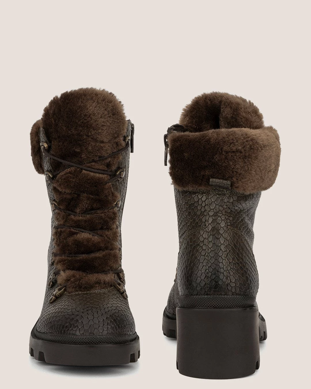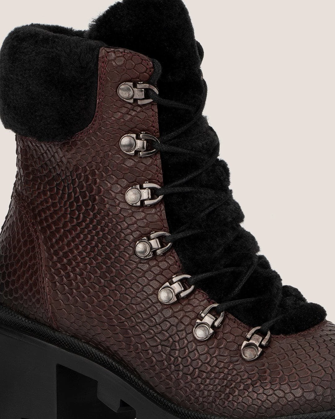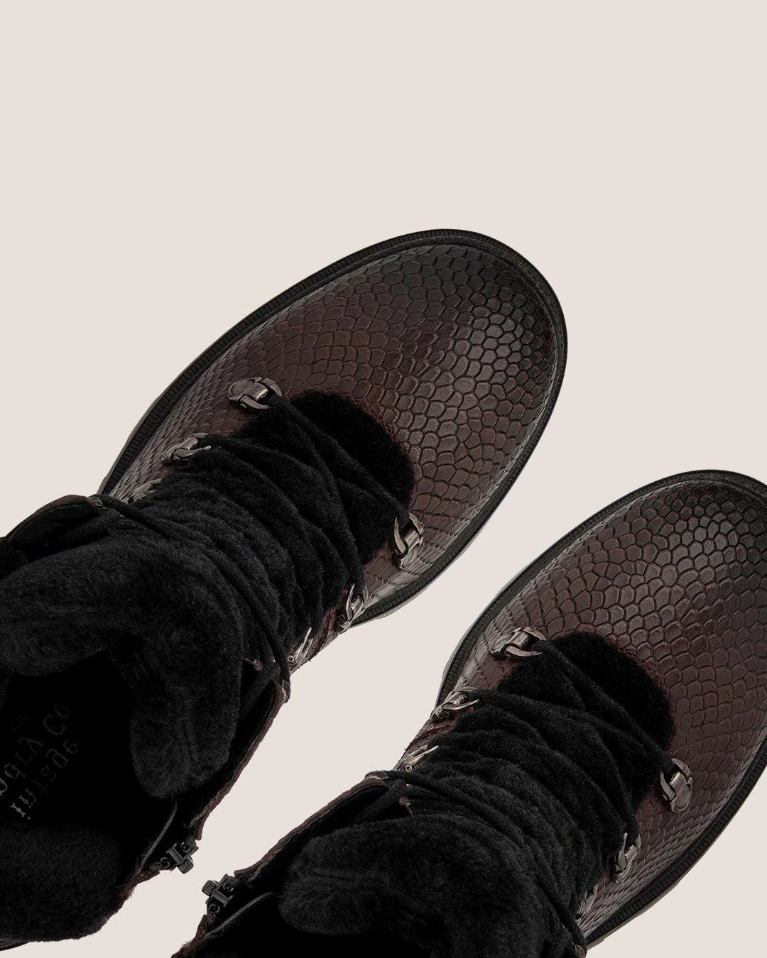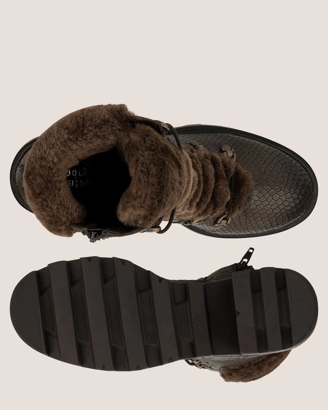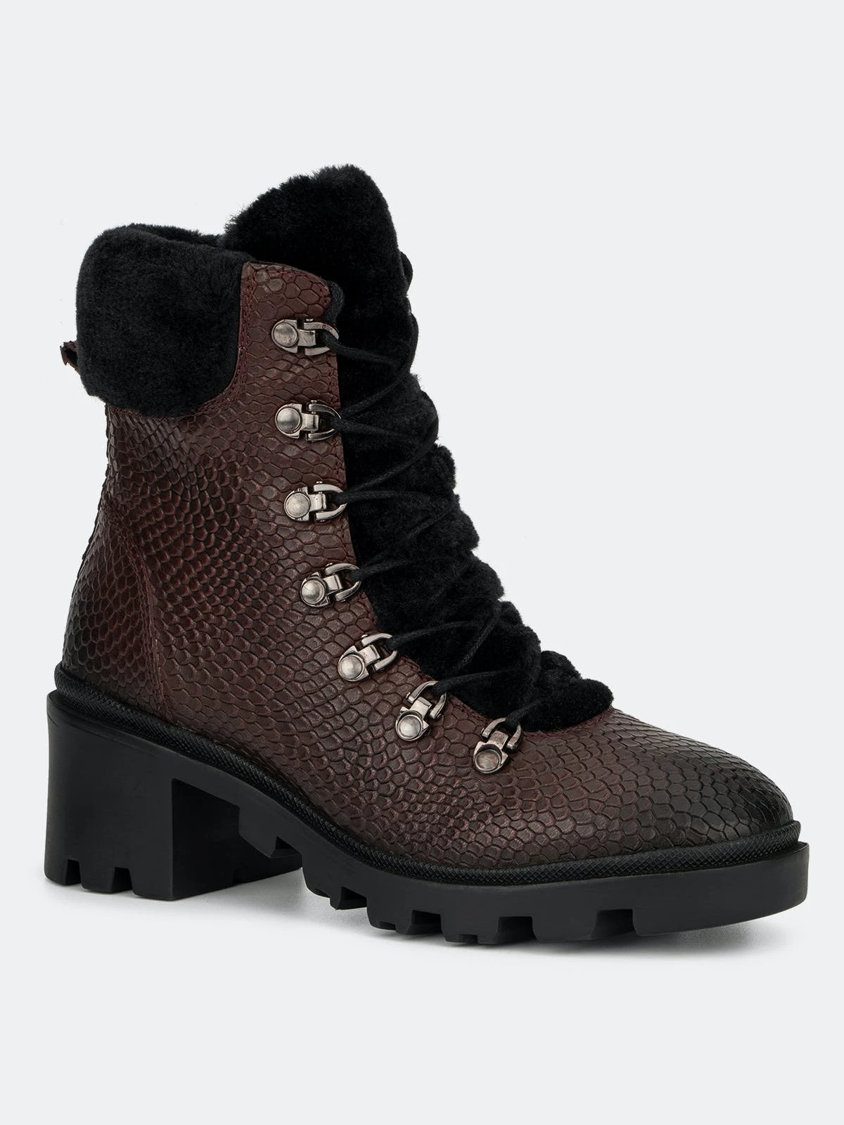 - Materials: Upper: 100% leather; Outsole: 100% rubber; Lining: 80% faux fur, 20% leather