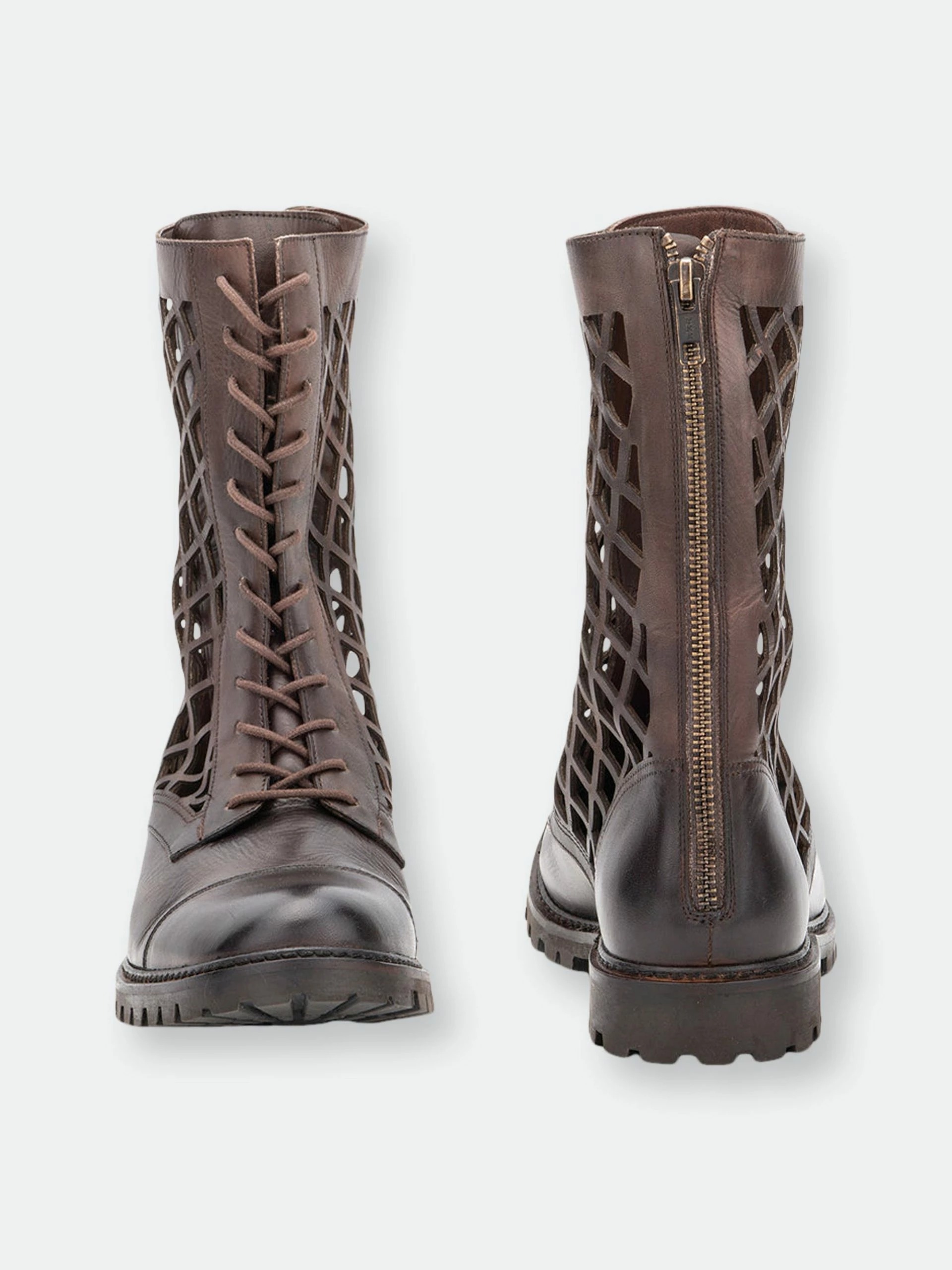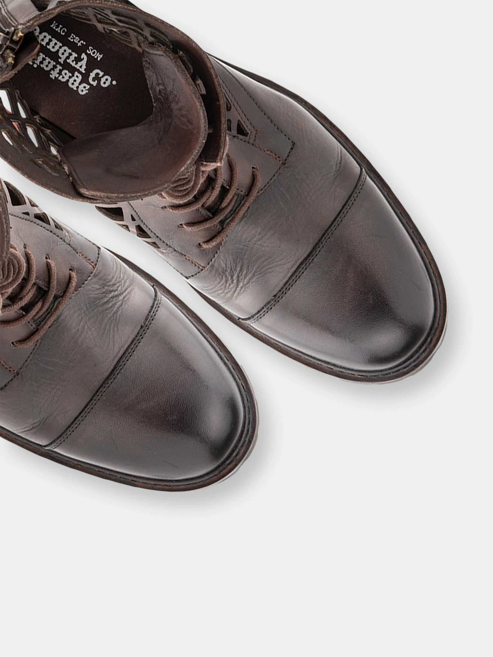 Love a good spin to a classic mid-calf, lace up boot. The Windsor boot by Vintage Foundry Co offers a breezy, and open exterior to a closed round toe front. A little peek never hurt anybody, and with this edgy style, your wardrobe will never cease to impress anyone.